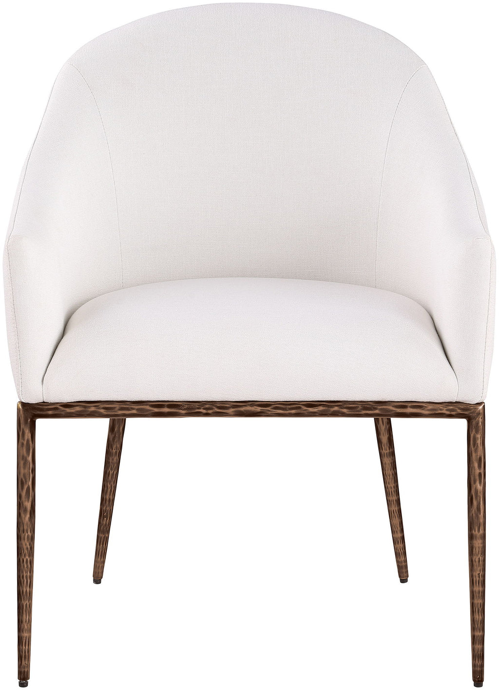 Ferro - Linen Textured Performance Fabric Upholstered Dining Arm Chair - Cream / Brushed Bronze