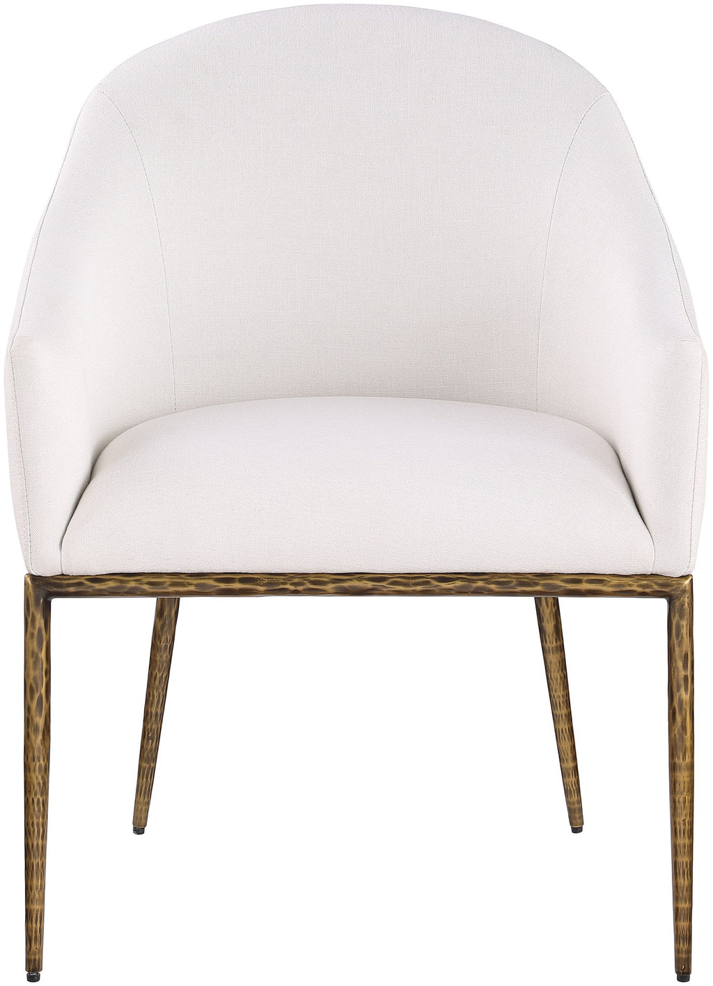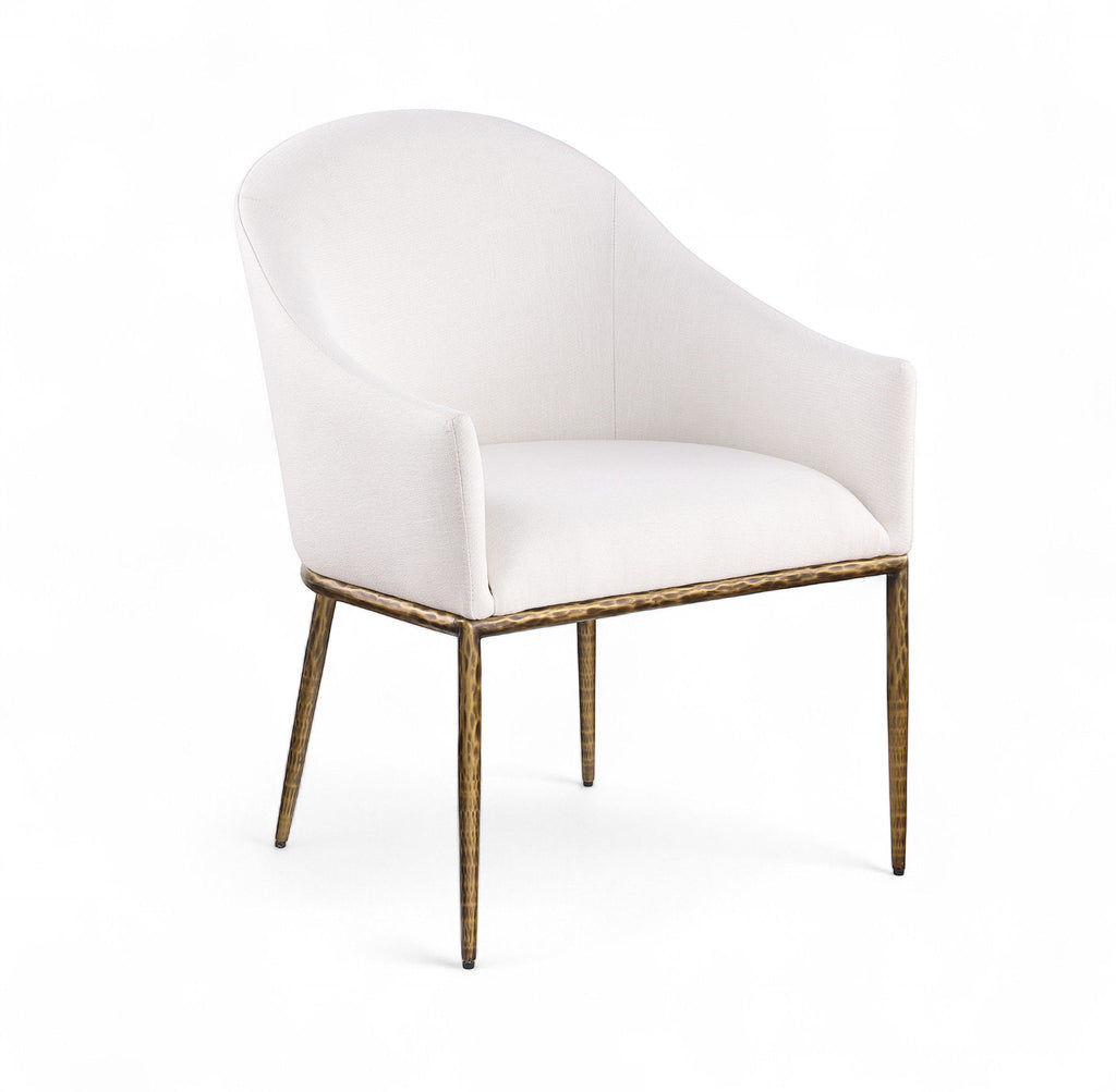 Ferro - Linen Textured Performance Fabric Upholstered Dining Arm Chair - Cream / Brushed Gold