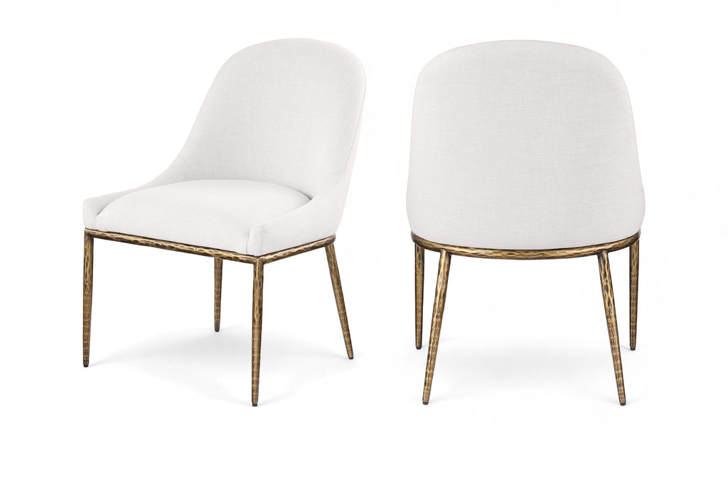 Ferro - Linen Textured Performance Fabric Upholstered Dining Side Chair - Cream / Brushed Gold