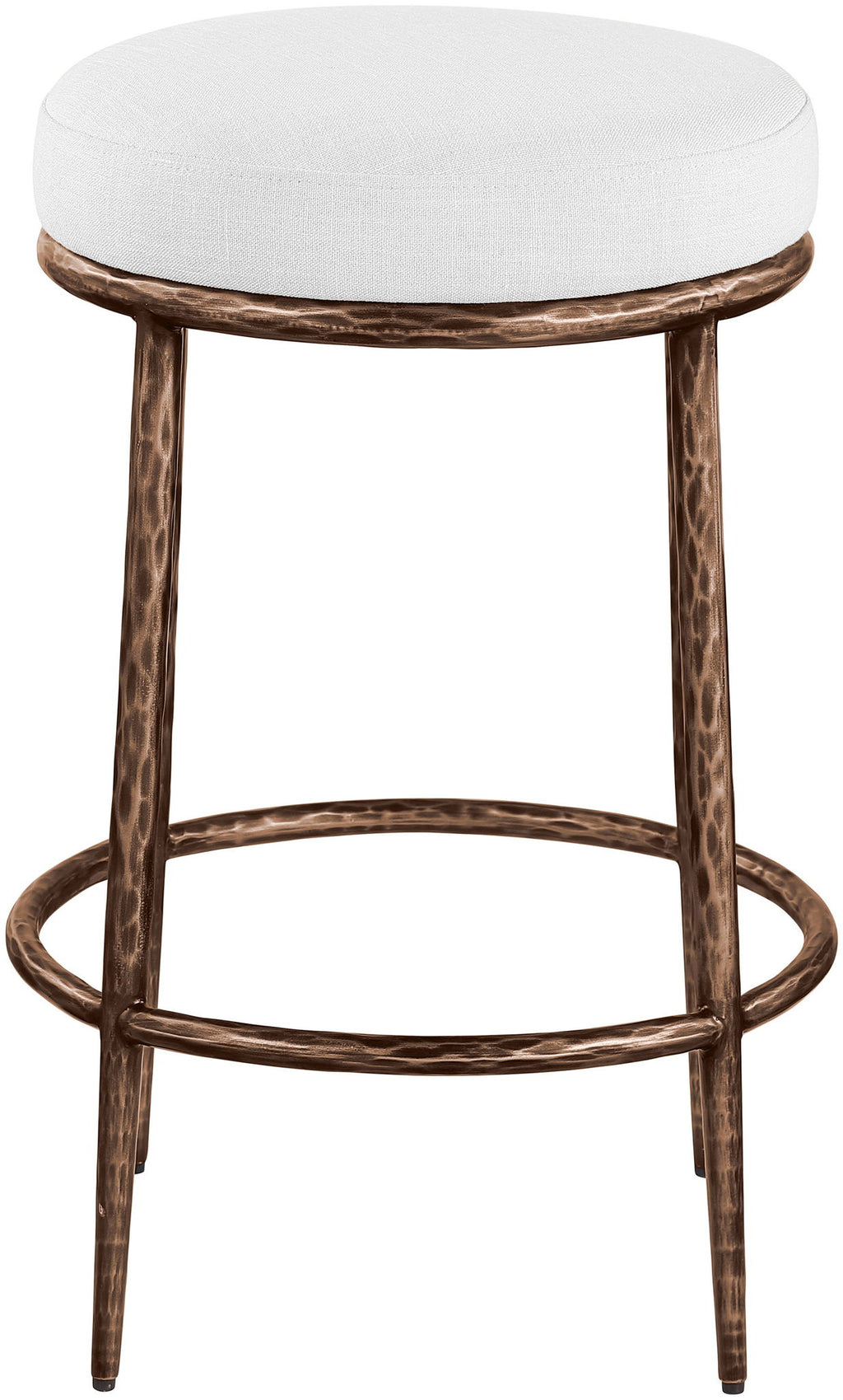 Ferro - Linen Textured Performance Fabric Upholstered Backless Counter Stool - White / Brushed Bronze