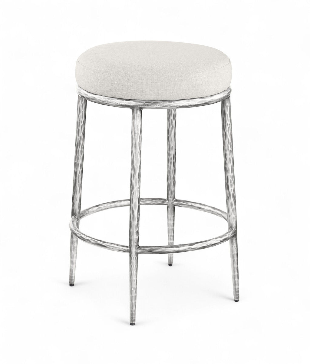 Ferro - Linen Textured Performance Fabric Upholstered Backless Counter Stool - Cream / Brushed Silver