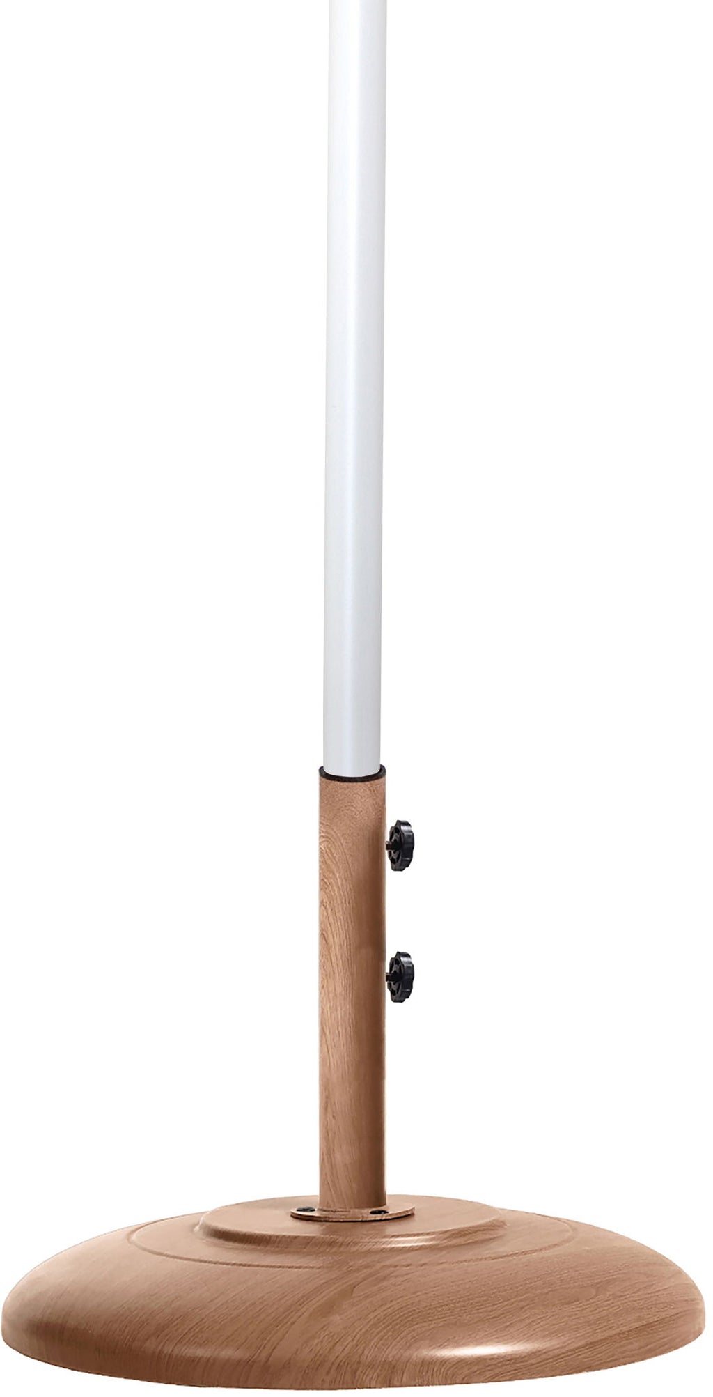 Bask in the shade wherever it's needed when you bring home this Fiji fabric and matte white aluminum patio umbrella with teak base set. This ingenious umbrella and base can be used as a standalone umbrella on a deck or patio - or add it to your choice of table for a sturdy solution for hiding from the sun's rays. The aluminum pole weathers the elements like a champ, and the umbrella is crafted from water-resistant fabric for a beautiful, lasting look.