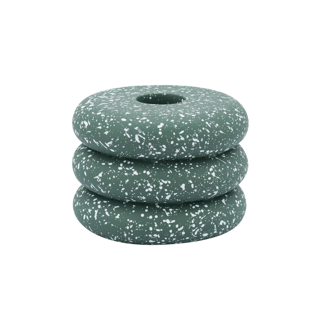 Stacked ring forms and a speckled finish give the Gabby Candleholder an edgy yet grounded presence. Available in green, rust, or cream, it channels a zen-inspired wabi-sabi style, transforming any taper into a striking sculptural moment.