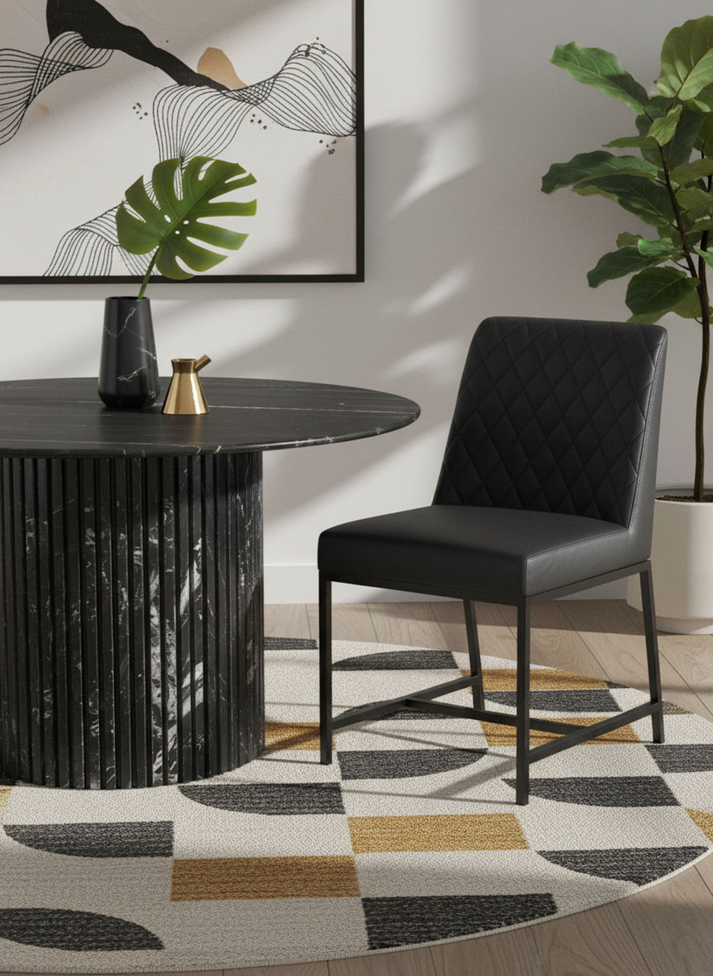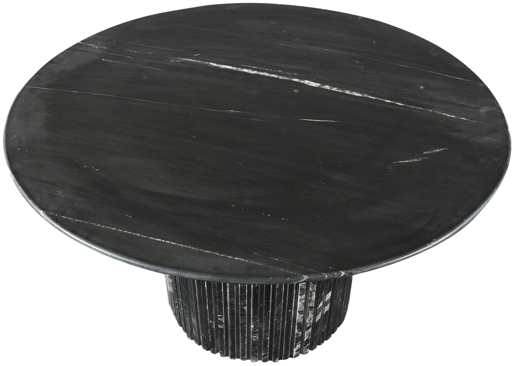 Add a refined look to your room with this handcrafted Genoa dining table, a stunning masterpiece that marries elegance and practicality. Crafted from genuine travertine, each table is a unique work of art, featuring a beige travertine top with intricate white veining. The fluted travertine base adds a touch of art deco design, making it a statement piece in any room and adding to its heirloom-quality design.