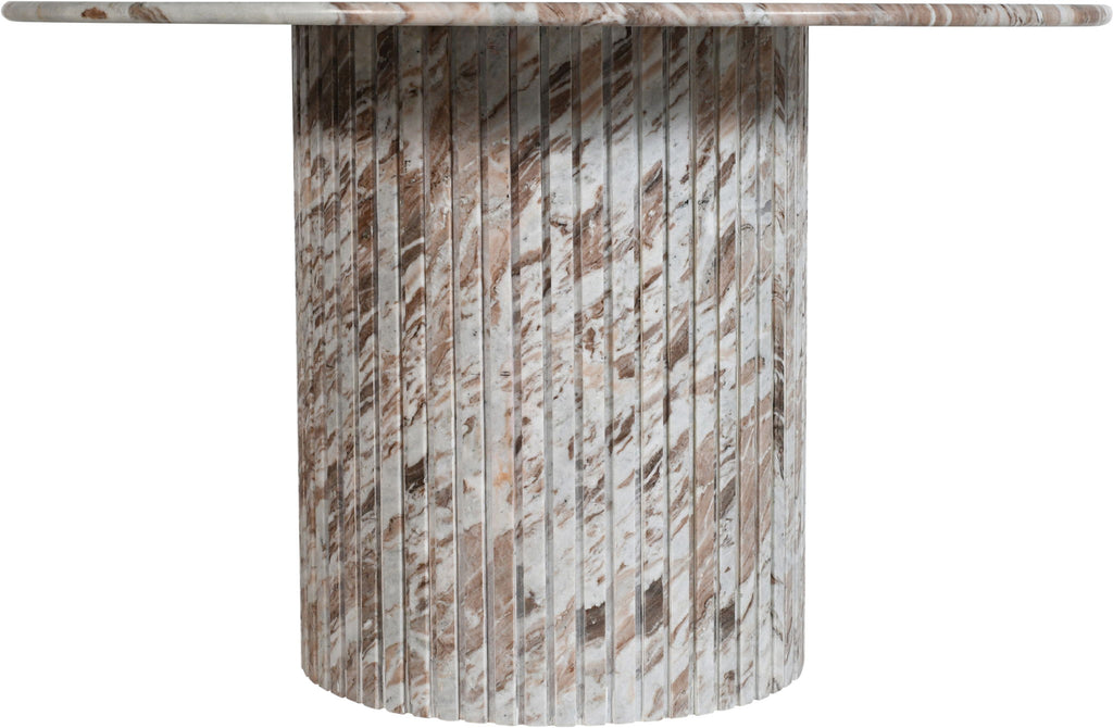 Brighten your domain with the Genoa toronto marble dining table, a stunning handcrafted piece made from genuine marble. This luxurious table features a beautiful wavy multi-colored pattern with brown and white that add depth and sophistication to any room. The fluted marble base provides a unique, textured touch, combining style and durability in one exquisite design.