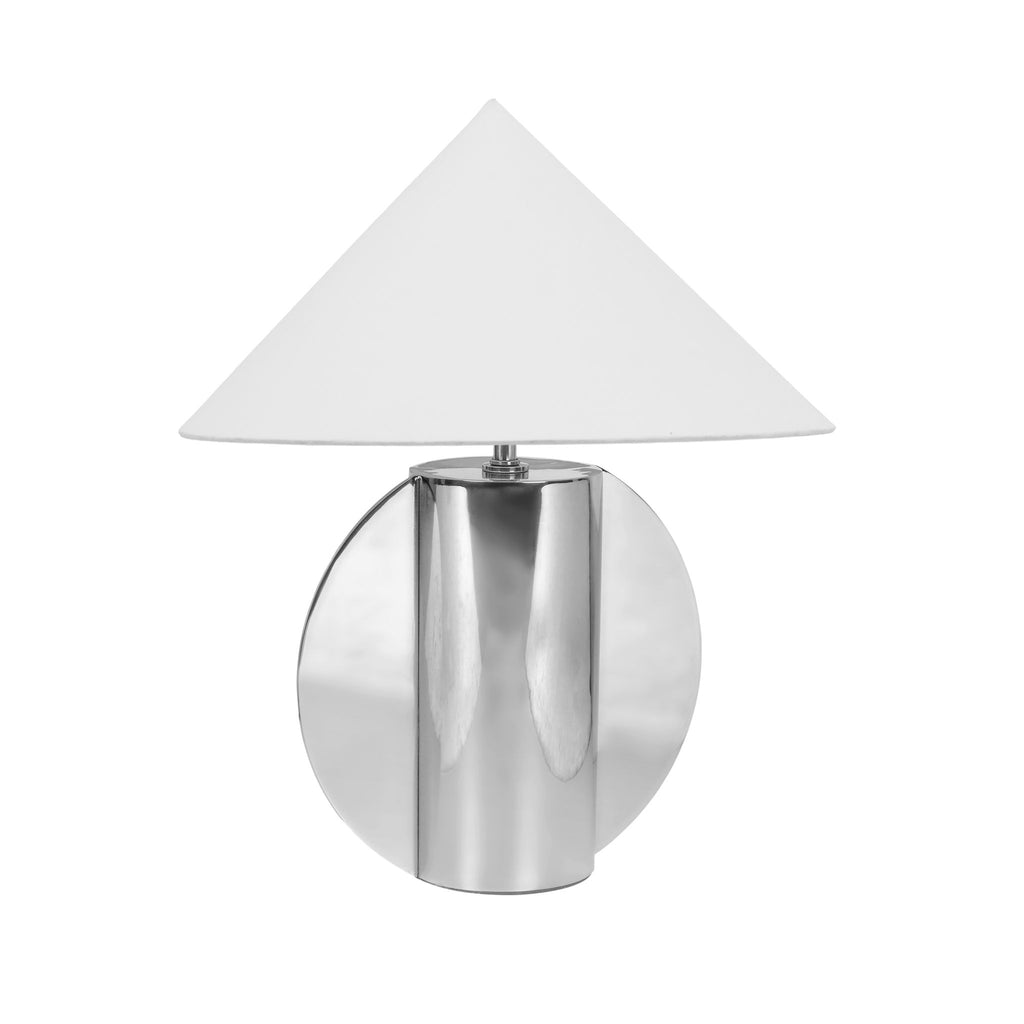 The Geo Table Lamp blends modern polish with understated elegance. Its sleek chrome-finished metal base catches the light while the off-white cotton shade softens the glow, creating a balanced, approachable look. Perfect on a bedside table, desk, or side table, Geo brings style and warm illumination to any corner of your home.
