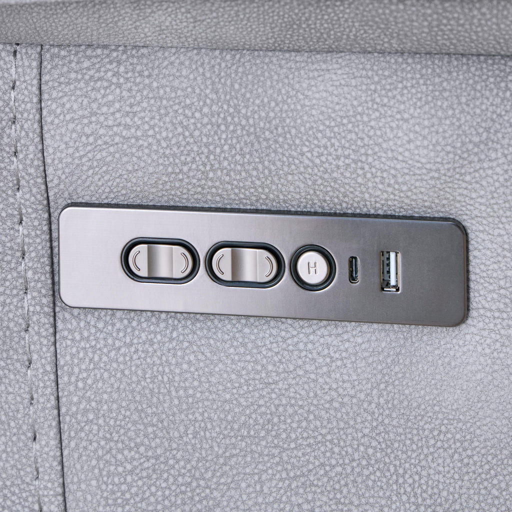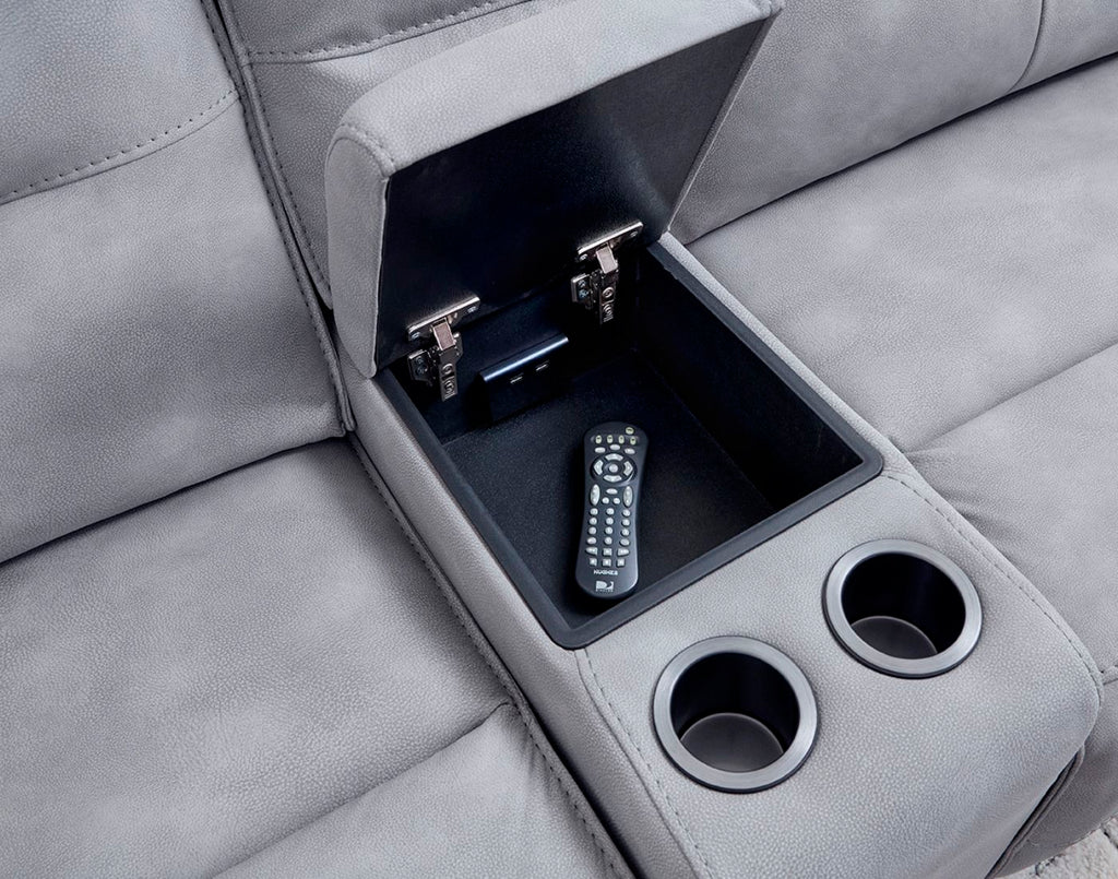 A favorite of many, this 6 piece Gladiator collection never disappoints. Its classic character offers cushioned comfort and promises hours of rest and relaxation. Gladiator is upholstered in a high-performance fabric with a 3-year warranty and features a distinctive flange welt. This collection delivers a smooth innovative zero-gravity design offering four relaxation angles: Upright, TV/Reading, Zero-gravity, and Therapeutic positions. Entertainment console has a convenient pop-up USB to make charging easy.