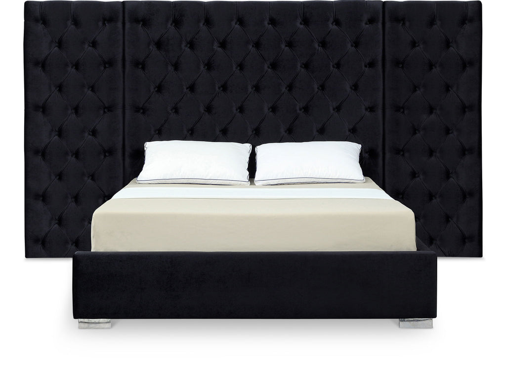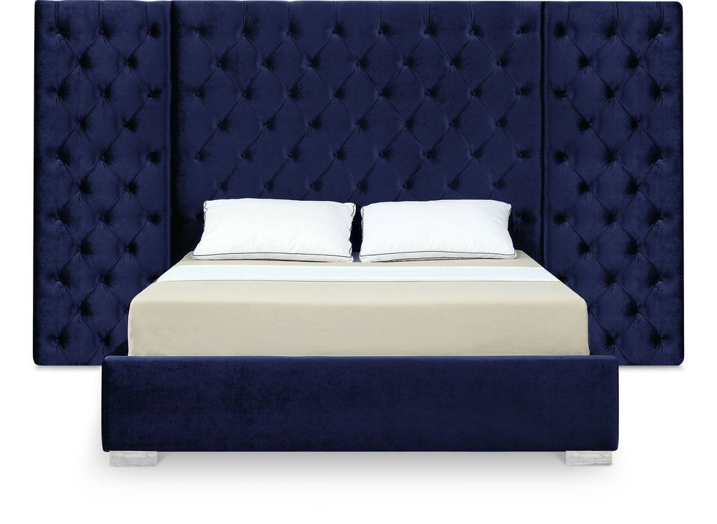 Rejuvenate your bedroom space with this Grande Bed. Svelte velvet covers each inch of this magnificently styled bed, lending it a bit of softness and glamour. The bold headboard is heavily button tufted for a regal and sophisticated look, and it's padded, so you can rest your back against it while you read or watch TV. The full-framed base is modish and sleek and provides sturdy support for the mattress of your choice.