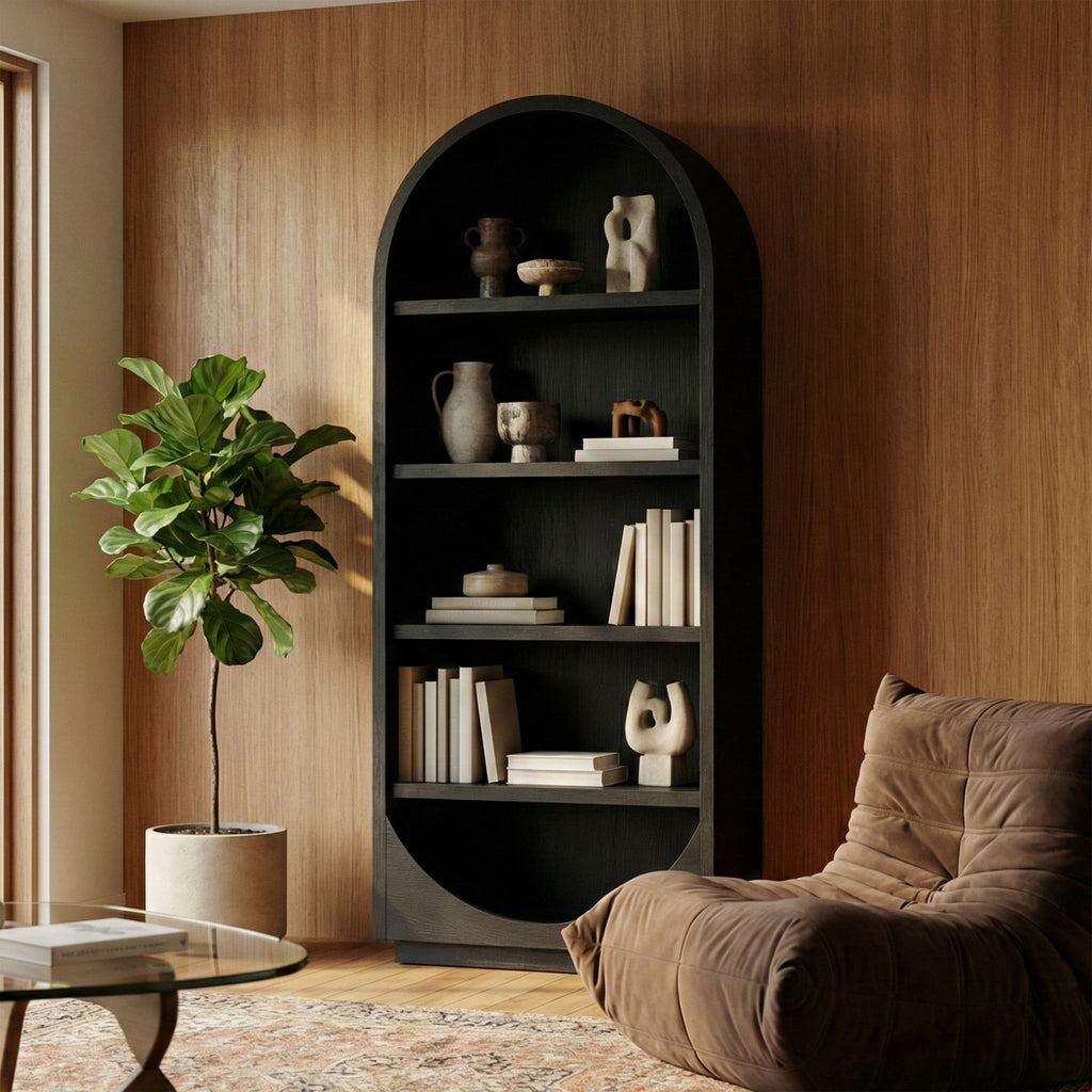 Hearth - Oak Veneer And Solid Wood Bookcase - Black