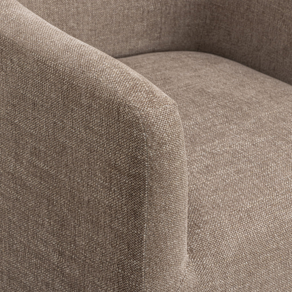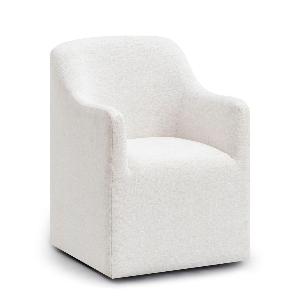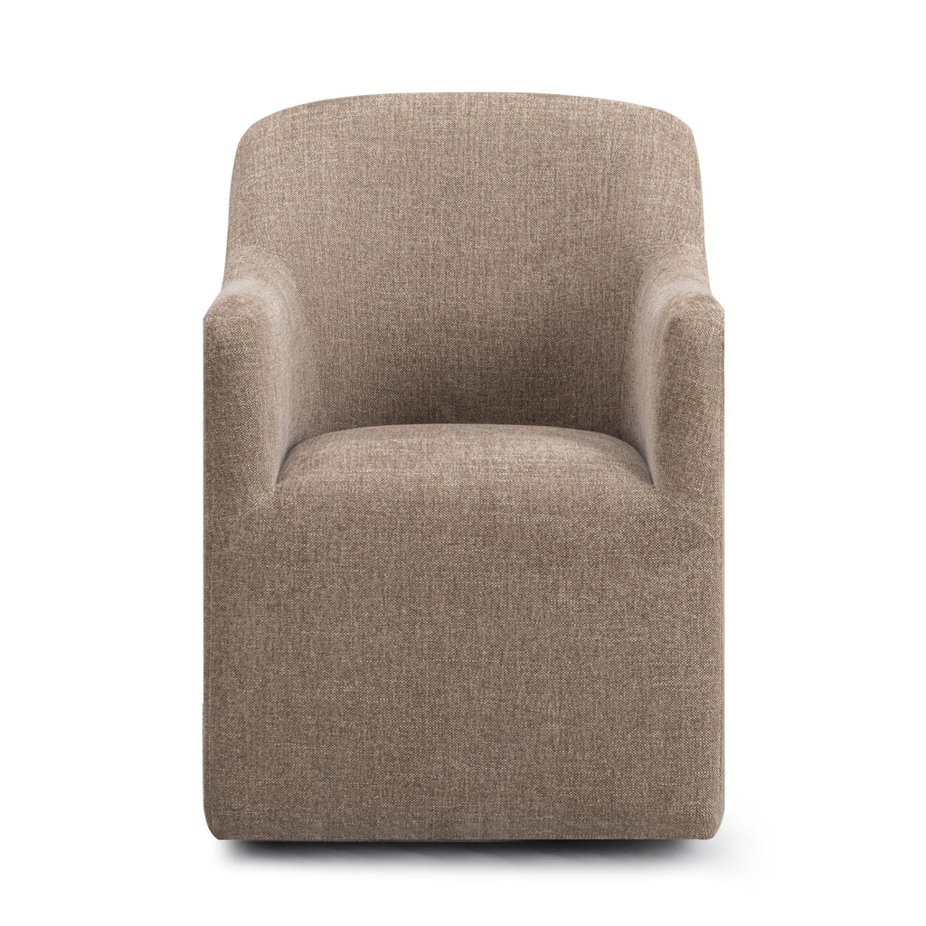 The Helena Dining Chair is comfort made elegant. Its high, curved back and padded arms welcome you in, while fiber wrapped-foam construction with webbing suspension keeps every seat feeling comfortable and supportive. Fully upholstered in easy clean, contract grade fabric and thoughtfully finished with protective leg tips, Helena is built for everyday life, long dinners, and memorable gatherings while bringing effortless style to your dining space.