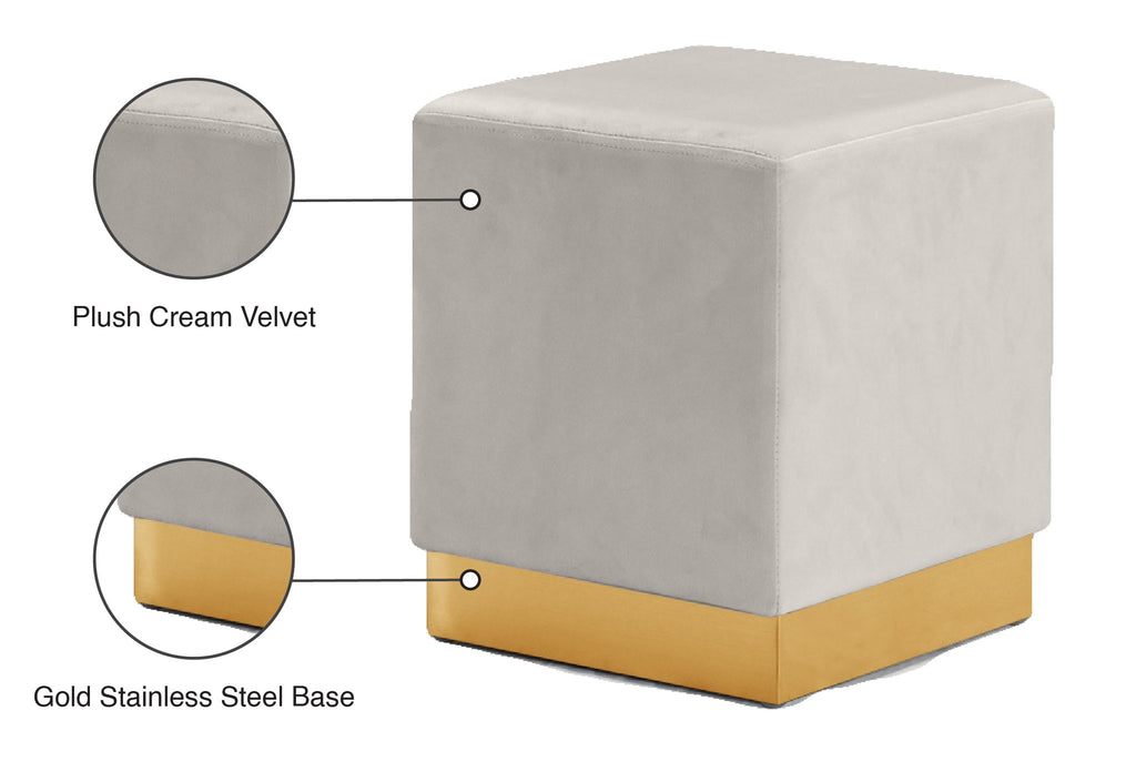 Get back to basics with a contemporary twist when you add the handsome Jax Ottoman/Stool to the mix. The velvet upholstery is nothing short of stunning and covers every inch of the ottoman with the exception of the contrasting stainless steel base. Your choice of fashionable colors makes it easy to pair this stool with your existing seating group in the living room or den or add a splash of excitement to a bedroom or dressing area.