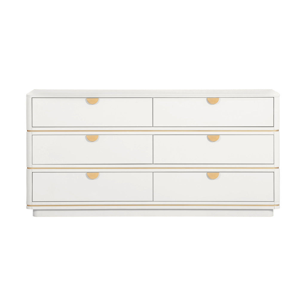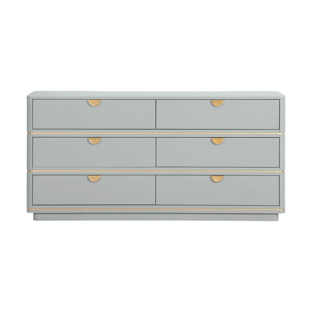 The Julieta 6 Drawer Dresser is an Art Deco masterpiece. The spacious soft-close drawers offer ample storage space, and the acacia wood material ensures great stability. Available in three classic color options, accented with brass pulls and delicate inlay, the Julieta will effortlessly add drama and sophistication to any space.