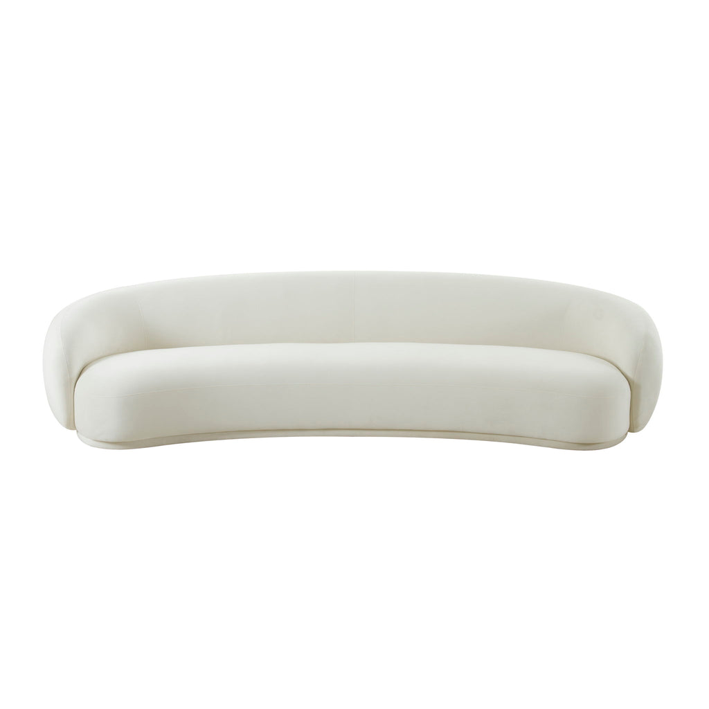 With its curved silhouette, plush upholstery, and modern design, the Kendall sofa will elevate any space with a luxe, contemporary feel. Generous fiber-wrapped foam padding and a sturdy pine frame offer long-lasting comfort and support.