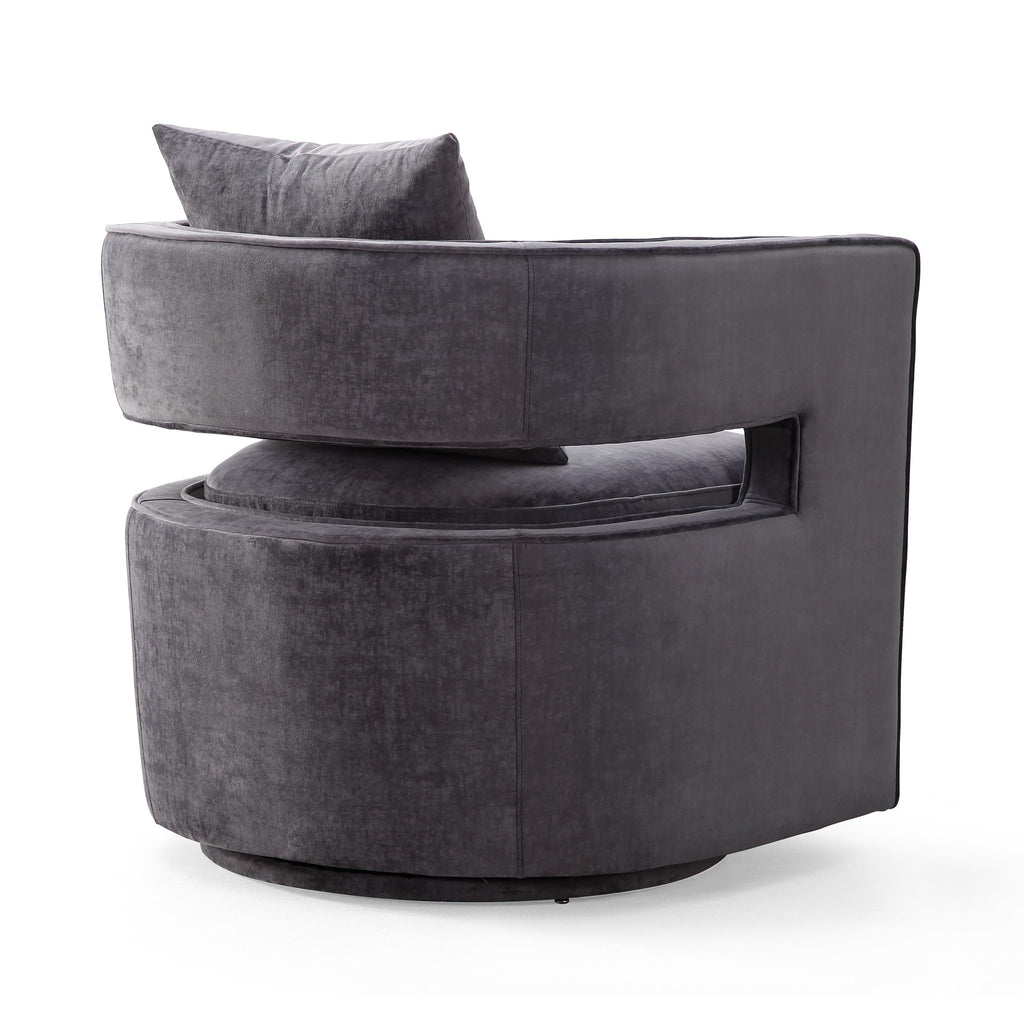 The minimalistic Kennedy swivel chair is versatile and stylish. A comfortable foam fill makes it as plush and inviting as it looks, while the solid wood frame and stainless steel legs set a sturdy foundation. This eye-catching chair will add a pop of style to any space. Available in several sumptuous velvet color options.