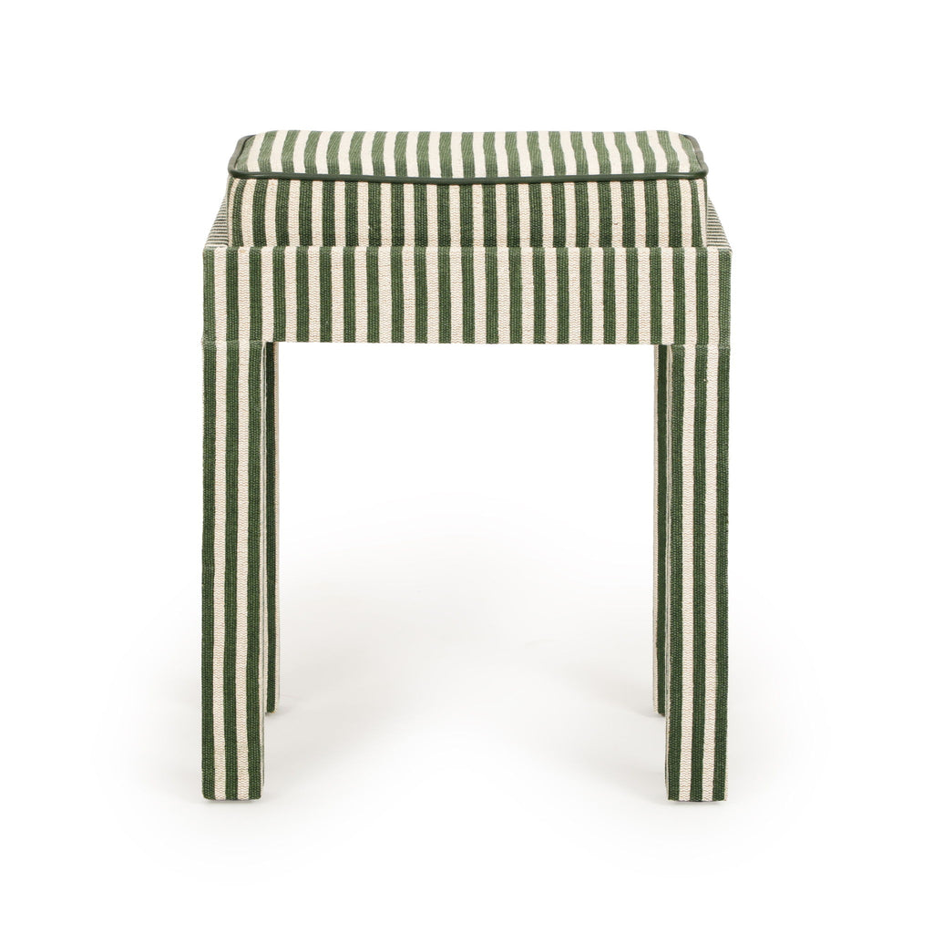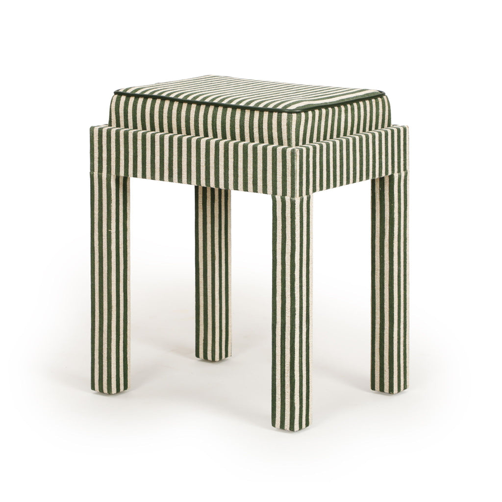 The Kora Stool is a warm, versatile accent with a striped fabric cover and a soft cushioned seat. Its durable wooden frame keeps it sturdy, while the textured stripes give it quiet character. Perfect for extra seating or as a stylish corner piece, available in two easygoing color options.