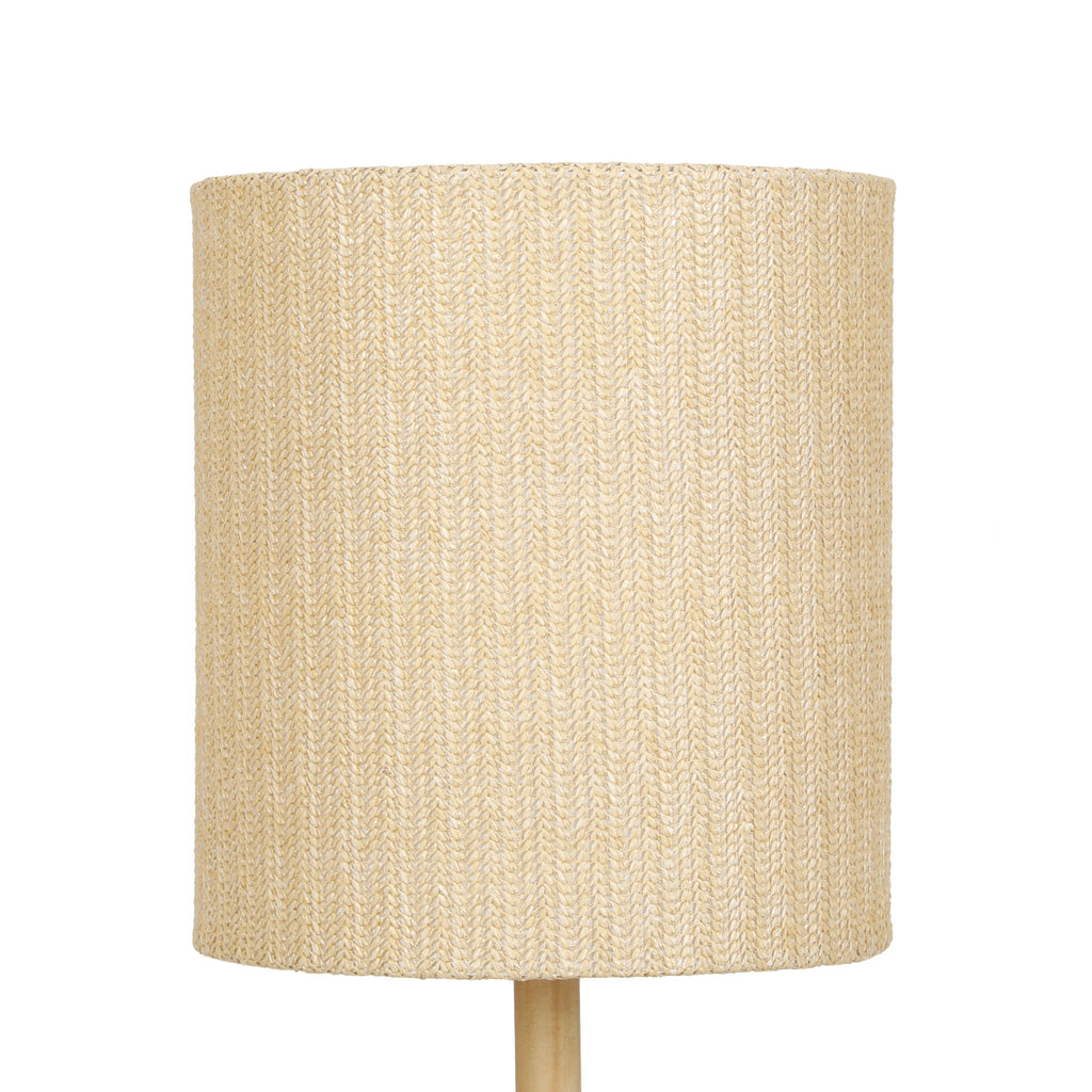 - Handwoven raffia shade casts a soft, cozy glow