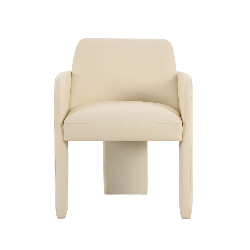 Dive into the seamless blend of retro charm and art deco elegance with the Leo Performance Vegan Leather Dining Chair. Wrapped in easy-to-clean vegan leather - in cream, black or tan color options - this fully upholstered frame promises both luxury and practicality, making upkeep a breeze. Not just a seat but a statement, this chair elevates any dining space with its distinctive style and undeniable comfort.