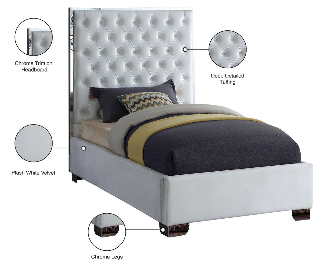 Make the Lexi velvet bed part of your dream bedroom setup. This bed has all of the bells and whistles you want, including a super tall headboard that stands nearly five-feet tall. The bed is covered in velvet fabric for a luxe look, and it's deeply tufted for added luxuriousness. The headboard is soft and welcoming against your back and head as you read or watch TV in bed, and the bed rests on legs for dependable sturdiness and durability. Use it without a box spring or foundation, since the slats are included.