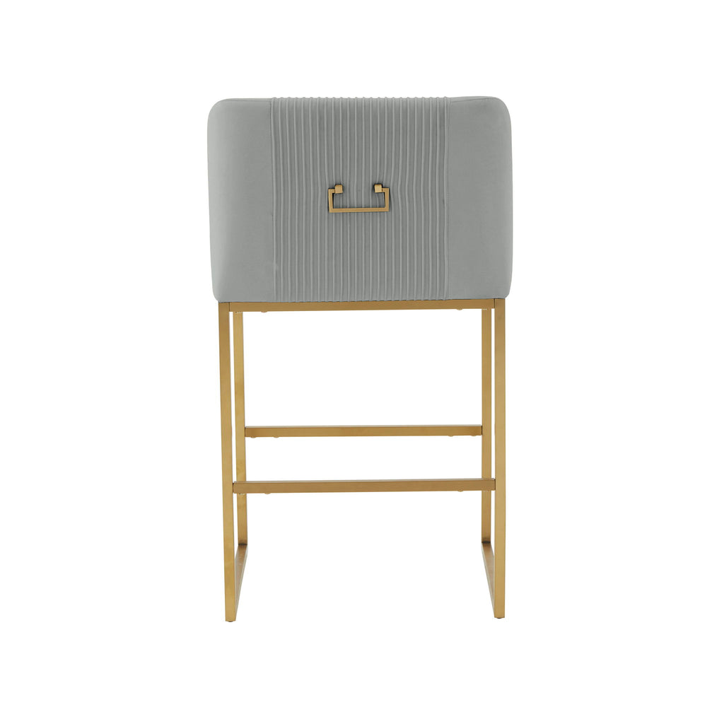 Lisa - Pleated Velvet Counter Stool - Gray