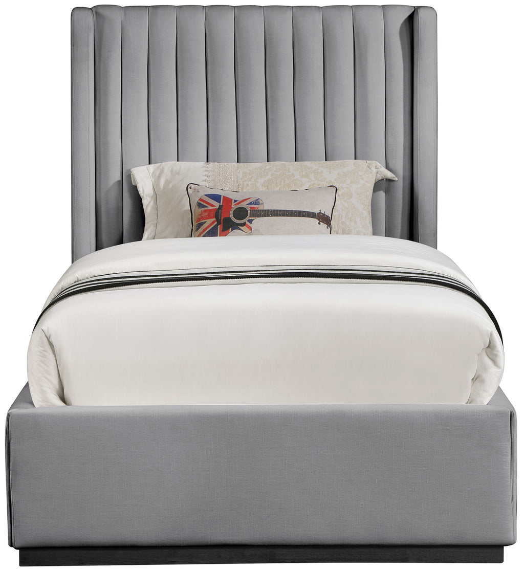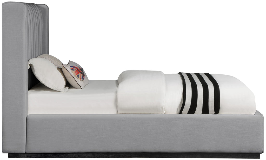 Nestle you (or the two of you) into the welcoming confines of this Logan linen textured fabric bed. This handsome bed features a super tall headboard that's channel tufted for extra softness and support against your back while you catch up on your reading or watch TV in bed. Soft rich beige linen fabric covers the back and sides of this wingback bed, giving it an ultra modern feel. A solid finished wood base provides ample support for lasting performance and durability.