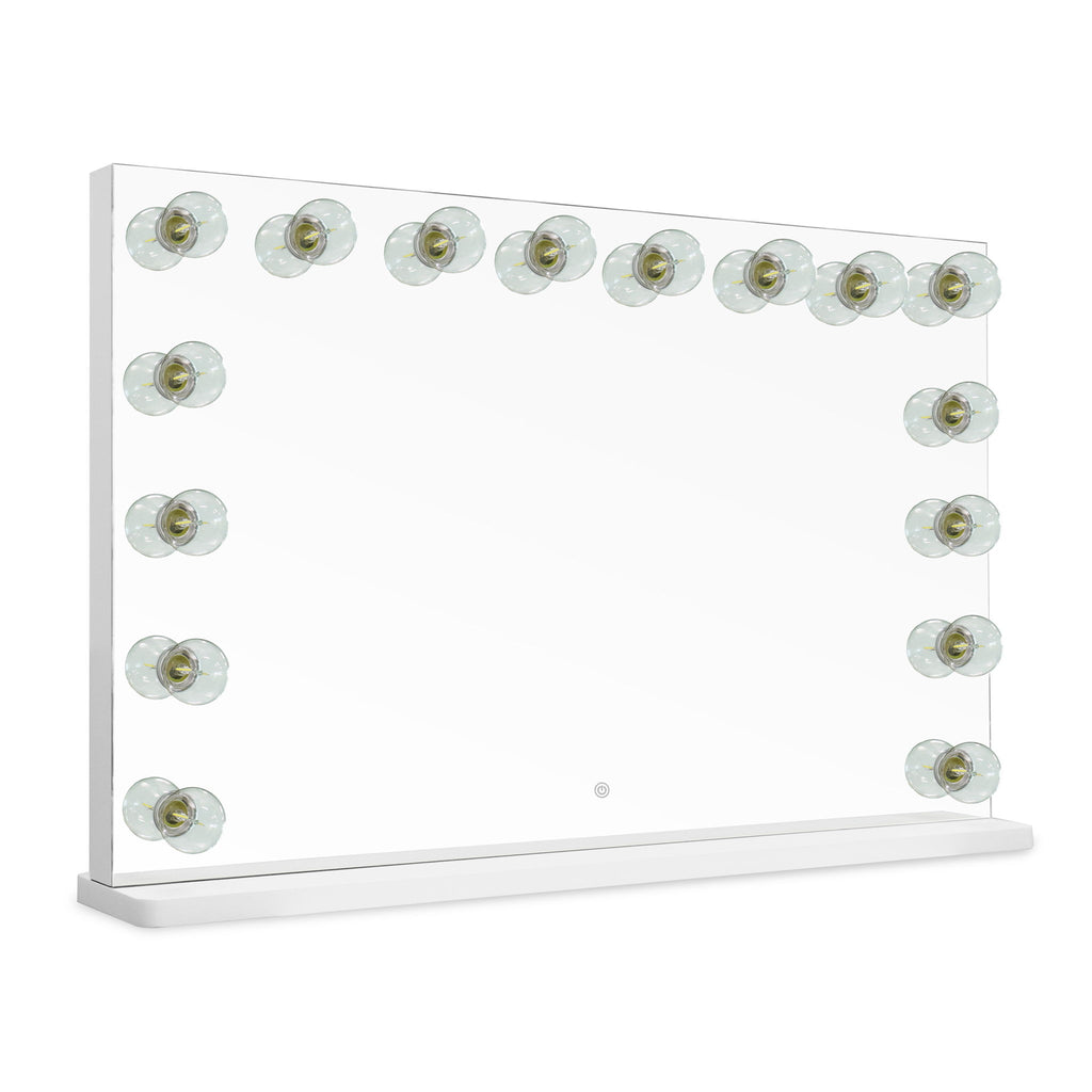 The Lola Vanity Mirror brings classic Hollywood charm with modern upgrades, now available in jumbo sizing and a sleek LED panel option. With smart touch controls and memory functions, it's your backstage pass to getting ready in style.