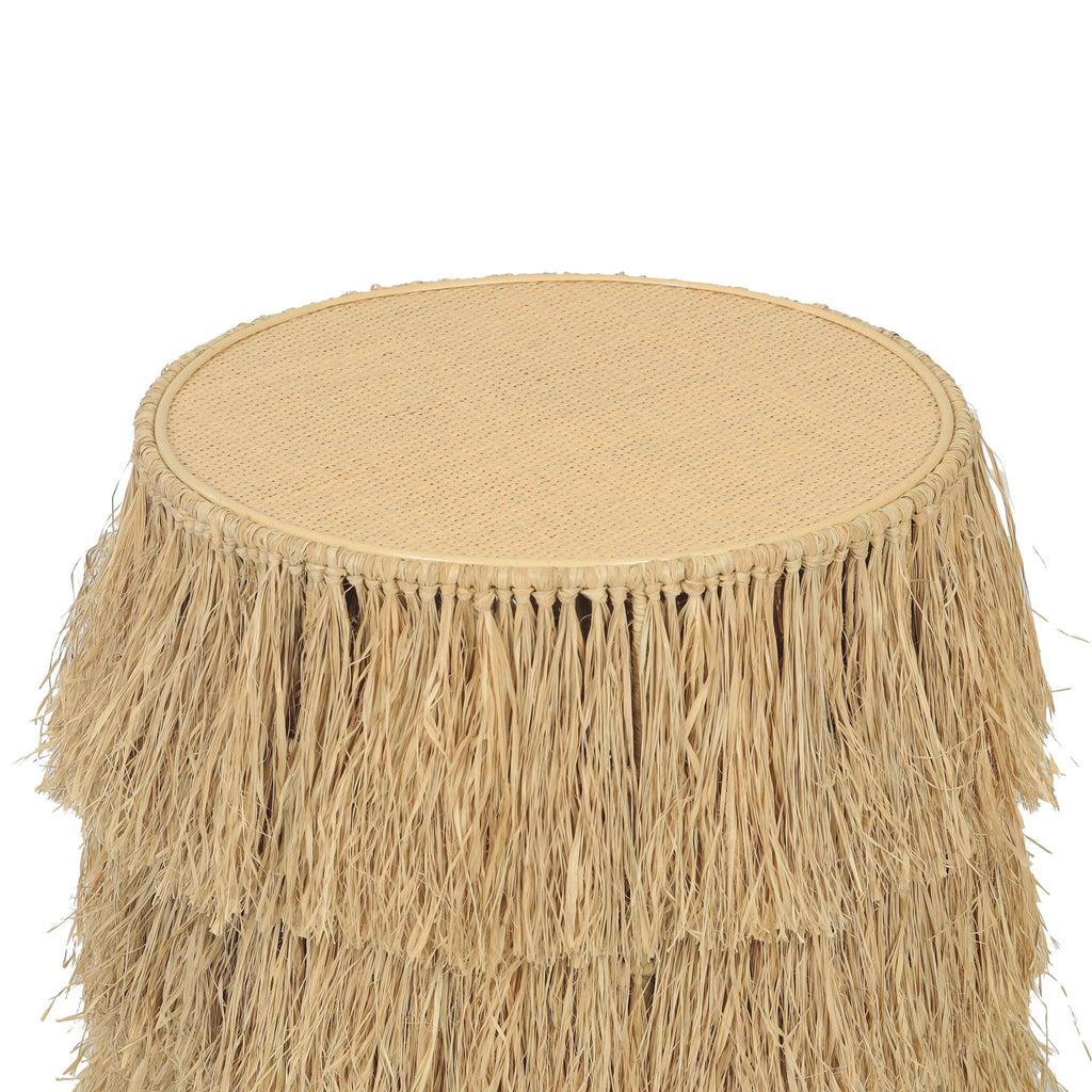 The Luau Natural Rattan Round End Table is your one-way ticket to vacation mode. Wrapped in tiers of flirty rattan fringe with a woven top, it's crafted from ethically harvested rattan and cane to bring that sunkissed, barefoot-by-the-beach energy right into your living room.