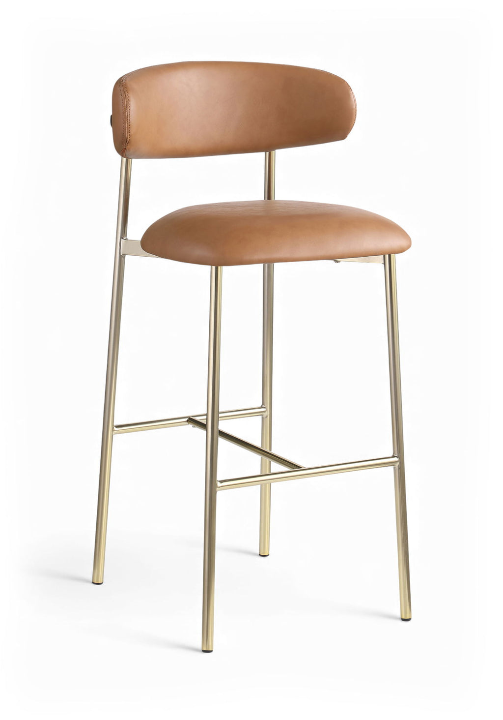 Lupita - Vegan Leather Upholstered Bar Stool (Set of 2) - Cognac / Brushed Gold