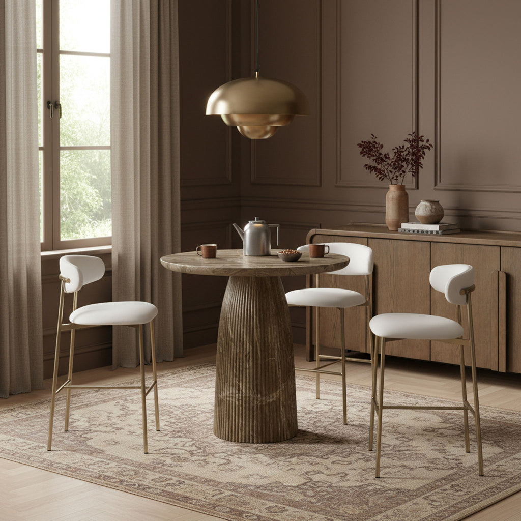 Lupita - Vegan Leather Upholstered Bar Stool (Set of 2) - White / Brushed Gold