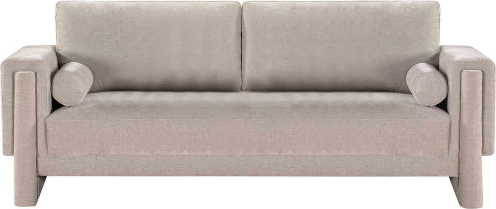Refresh your living space with this Madeline chenille fabric living room sofa. It's upholstered in rich chenille fabric with plush padding and bolster pillows that complete the look while supporting your body while you relax and unwind. The sofa's modish design ensures it seamlessly complements any decor and fits well with other items in the Madeline collection. Whether you're entertaining guests or unwinding with a book, this chair provides both coziness and sophistication.
