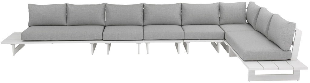 Maldives - 6 Piece Water Resistant Outdoor Patio Modular Left Arm Facing Sectional With White Base - Gray