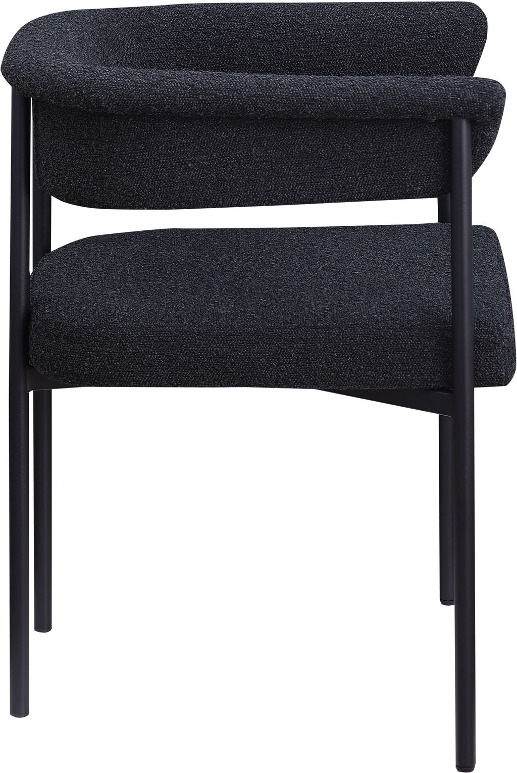 Showcase your unending hospitality when you make guests feel comfortable seated on this Malin black boucle fabric dining chair. The epitome of up-to-the-minute elegance, this chair merges sleek durability with timeless sophistication. Perfect for both formal dining and casual gatherings, its contemporary design effortlessly elevates any space. This chair isn't just about comfort (although it is). It's a statement of style that promises to enhance your dining experience with its luxurious materials and impeccable craftsmanship.