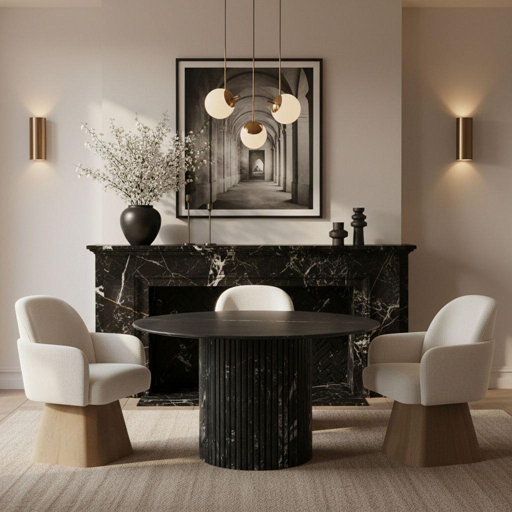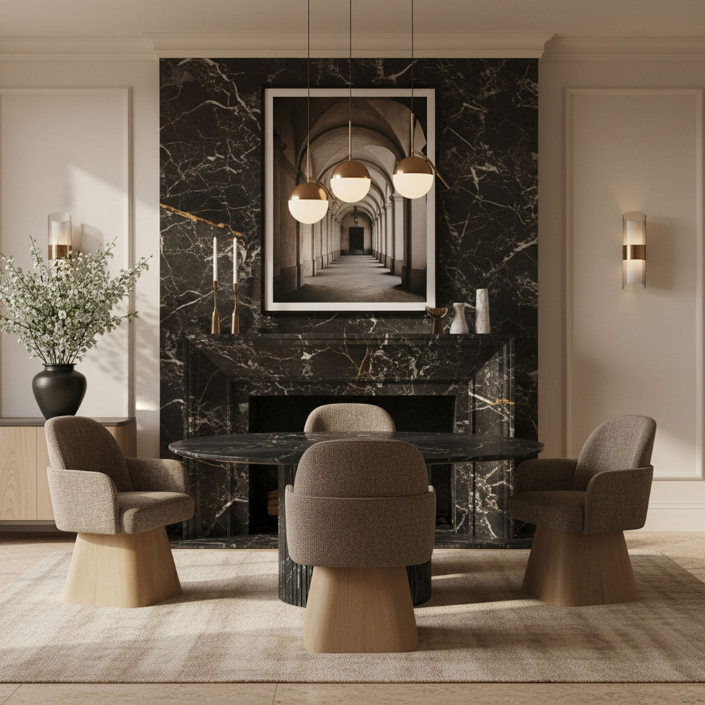 Marlowe - Linen Textured Fabric Upholstered Swivel Dining Arm Chair - Brown