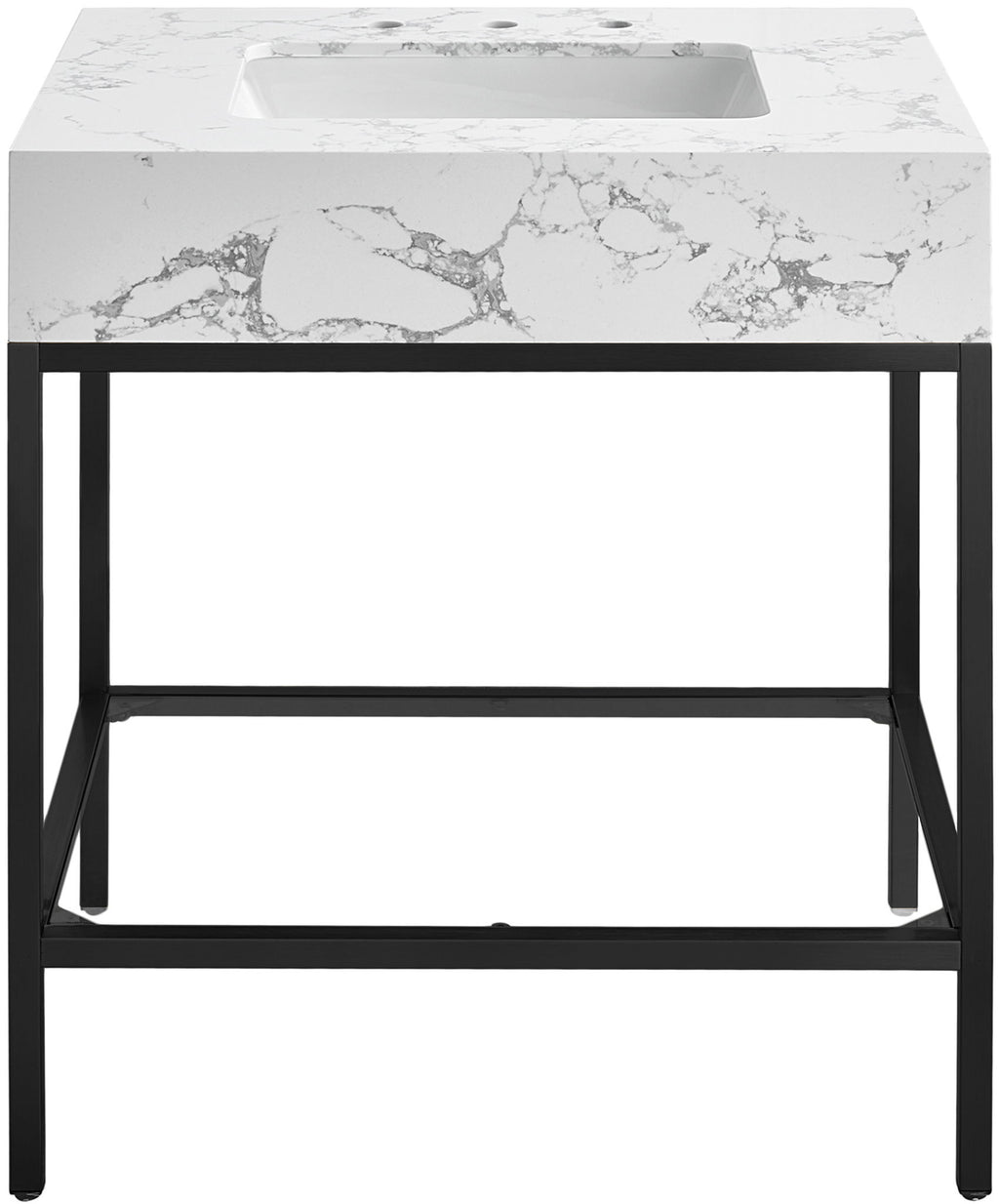 Marmo - 30" Engineered Marble Bathroom Vanity With Black Base - Black