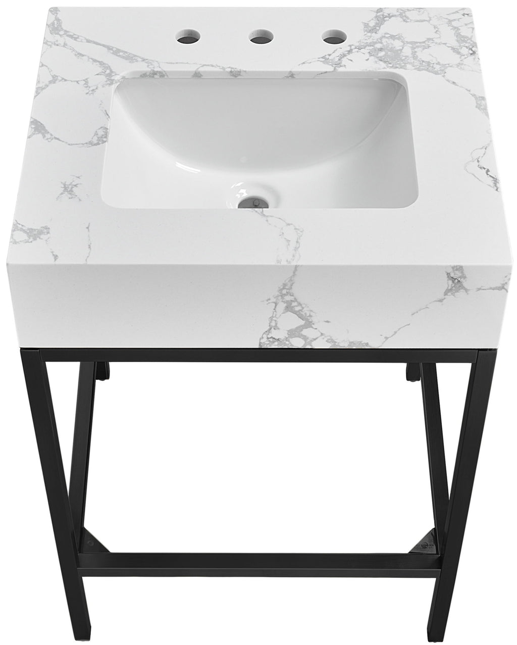 Marmo - 24" Engineered Marble Bathroom Vanity With Black Base - White