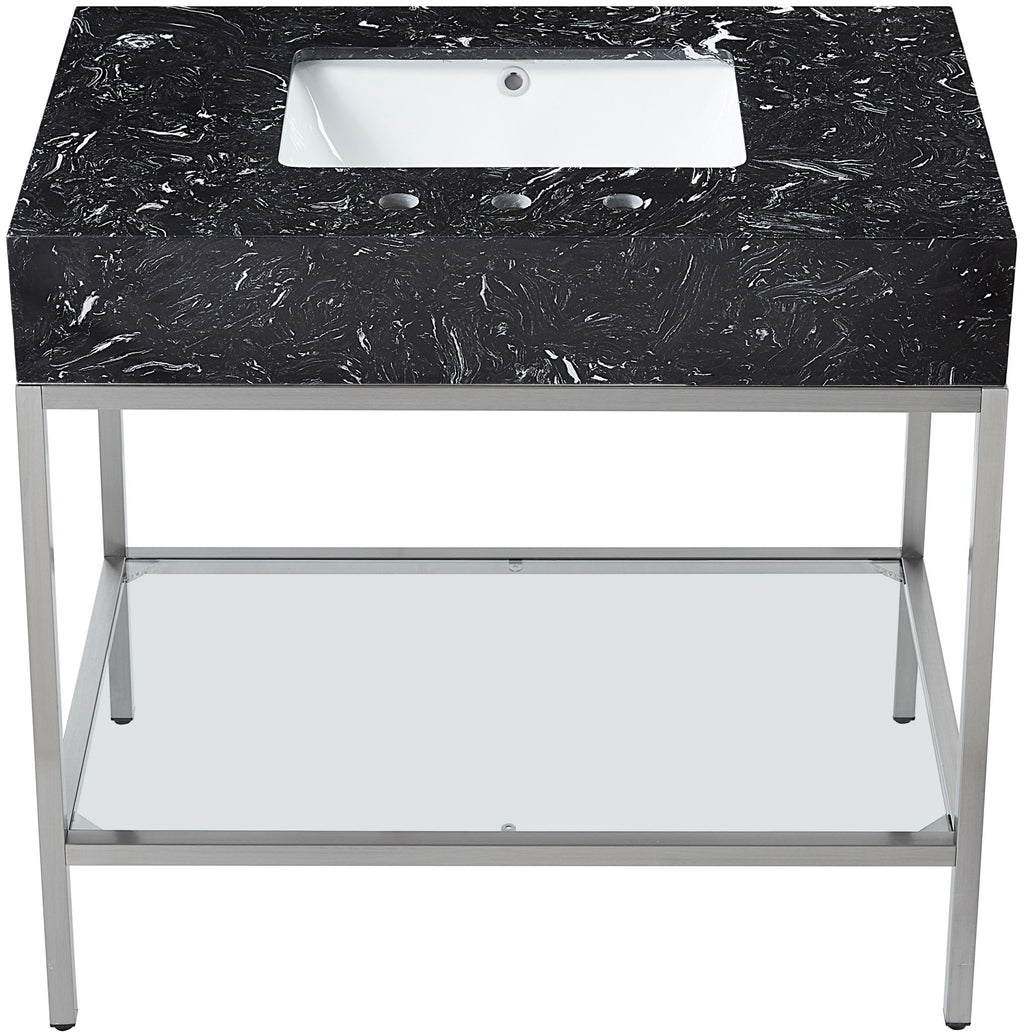 Marmo - 36" Engineered Marble Bathroom Vanity With Chrome Base - Black