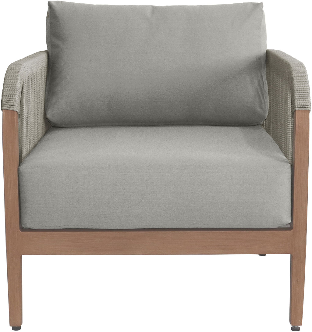 Make your outdoor oasis even more inviting with this Maui Water Resistant Fabric Outdoor Patio Chair. Crafted with an aluminum frame to look like teak without the maintenance requirements, this chair offers both style and convenience. Resilient fabric cushions, water-resistant and plump, have quick-dry foam inserts so you enjoy leisure time without worry. With its contemporary resort look, this chair adds sophistication to any patio, porch, or deck setting. Embrace the essence of outdoor comfort and style with this elegant addition - your perfect companion for leisurely moments outdoors.