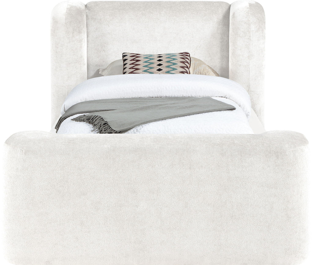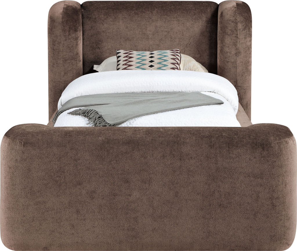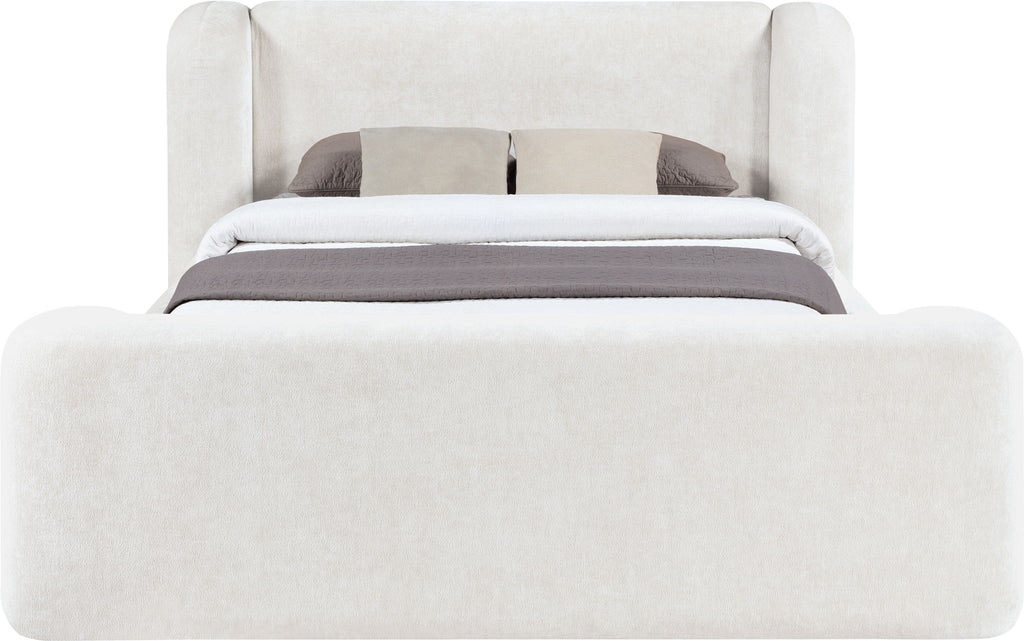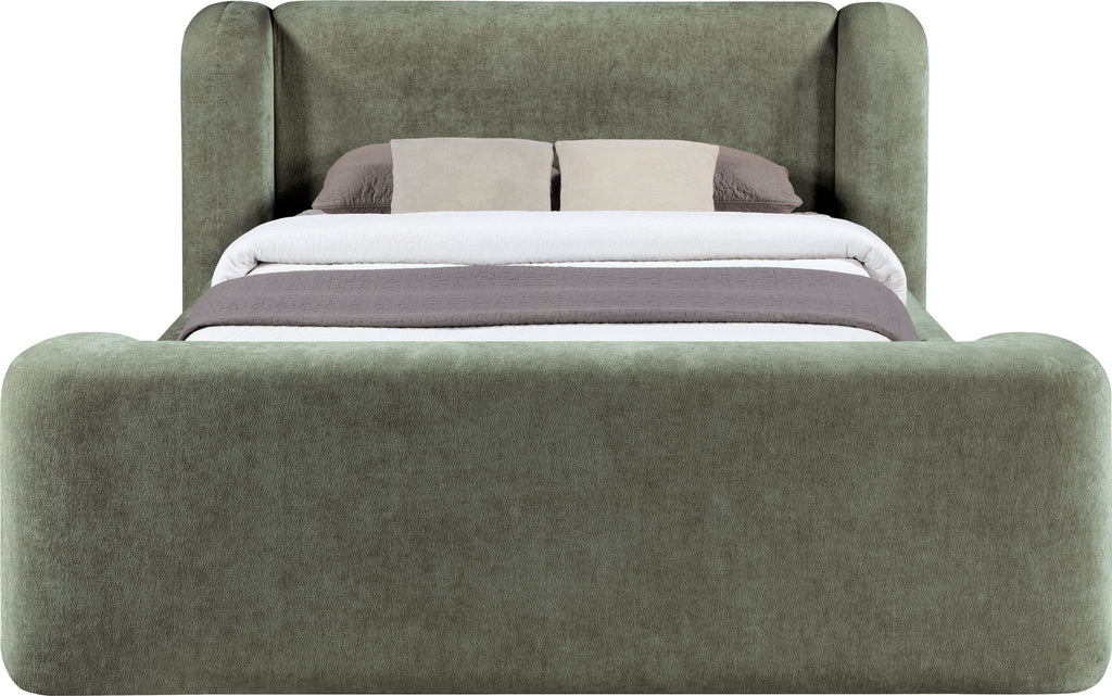 Dressed in soft chenille, the Modena bed blends bold curves with cozy texture for a striking yet inviting centerpiece. Upholstered in high-quality 570 GSM polyester chenille, its pillowy silhouette wraps fully around the headboard and footboard, delivering plush comfort and sculptural presence in equal measure.