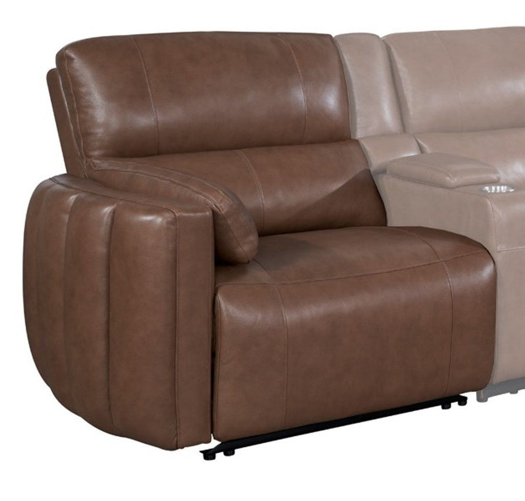 Covered in gorgeous supple Sable colored leather with custom match, this transitional sectional features convenient power headrest and recline functions