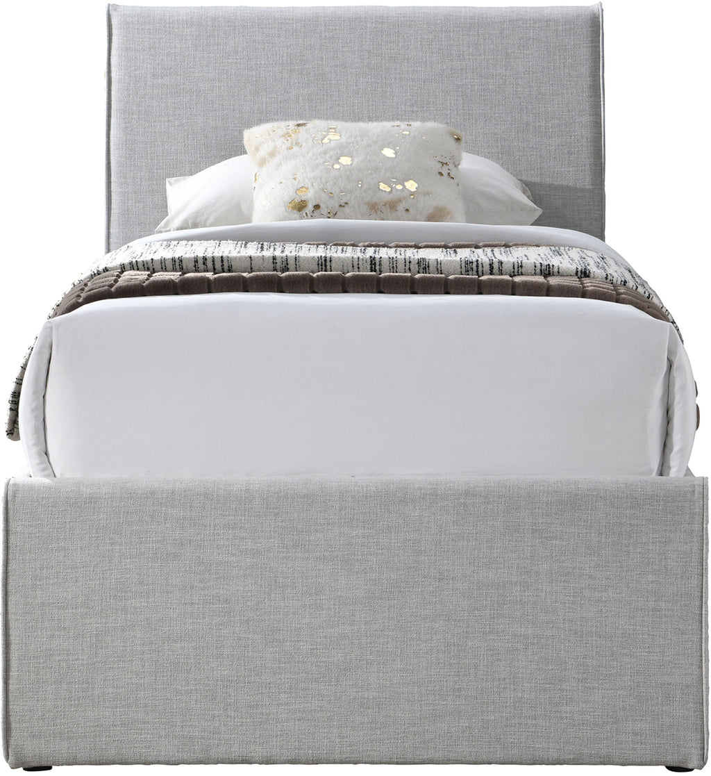 Add extra sleeping space or storage with this Myles linen textured fabric twin trundle bed. Upholstered in soft, durable linen textured fabric, it features a rolling trundle that accommodates up to an 8" thick twin mattress. The trundle's versatility allows it to be placed on either the right or left side, making it ideal for teen, tween, or guest bedrooms and dorm rooms. Practical and stylish, this trundle bed maximizes functionality while enhancing the aesthetic appeal of your room and maximizing space for sleepovers and overnight guests.