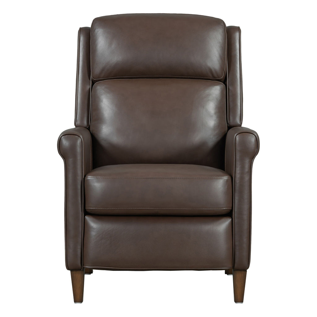 Meet the Northfield pushback recliner – where style meets comfort. Upholstered in soft leather with a custom match, it features an elegant key arm with detail welting and a concealed extension footrest for added sophistication and comfort.