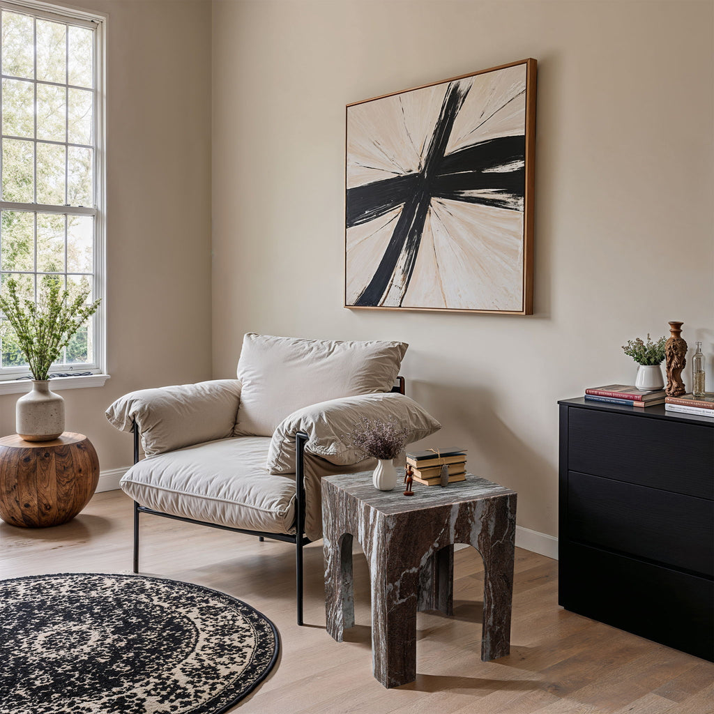 Discover the Palermo marble with veining end table, showcasing an arched shape and Art Deco design, making it a stunning centerpiece for any space. Crafted for both style and durability, it blends luxury with practicality, becoming the focal point of gatherings and conversations. Elevate your living area with its timeless appeal and sophisticated design.