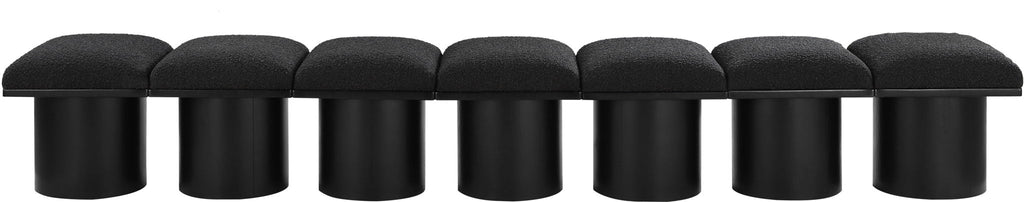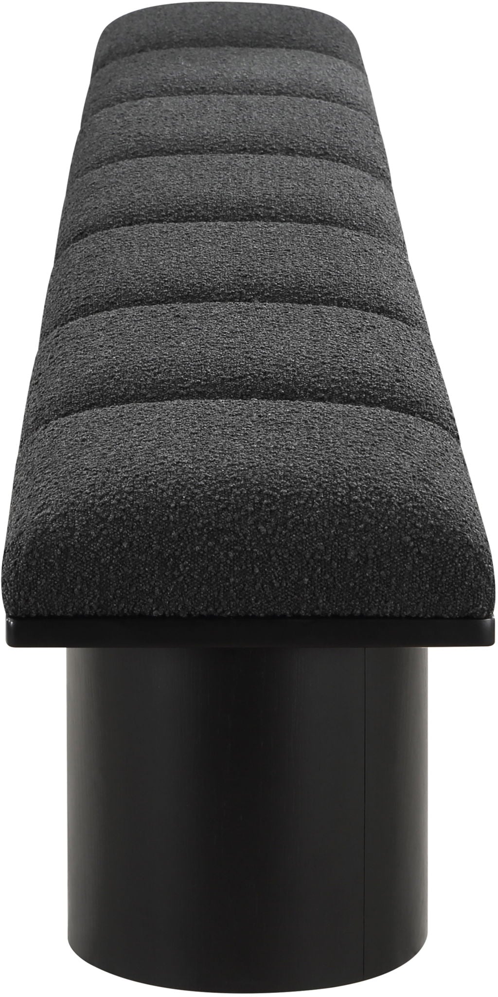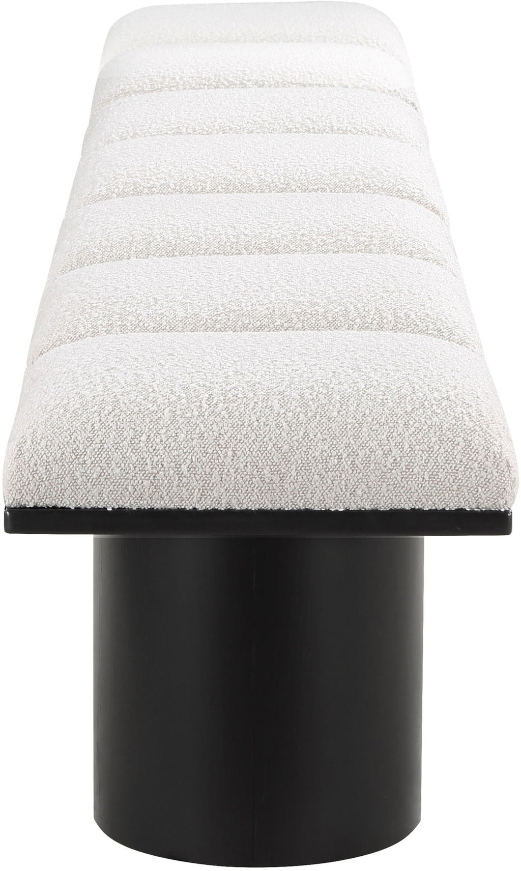 Bring valuable seating and remarkable style to your space with this Pavilion Boucle Fabric Bench, an exquisite balance of style and usability for the entryway, bedroom, and beyond. Crafted from oak veneer with a black finish, this bench has a 4-inch-thick seat cushion that's channel-tufted for a touch of luxury. The bench's columnar bases add a dash of Art Deco design, making it a captivating focal point in any room.