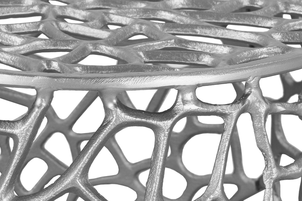 Bring modern elegance and up-to-the-minute sophistication home when you grab this Priya coffee table for your living room or family room. An intricate maze of woven aluminum, this table instantly grabs the eye from all angles. A perfect addition next to a sectional or couch, this table's ample size gives it limitless possibilities - from display space and room for holding drinks to additional accent piece.