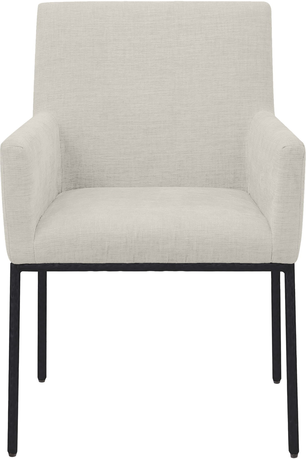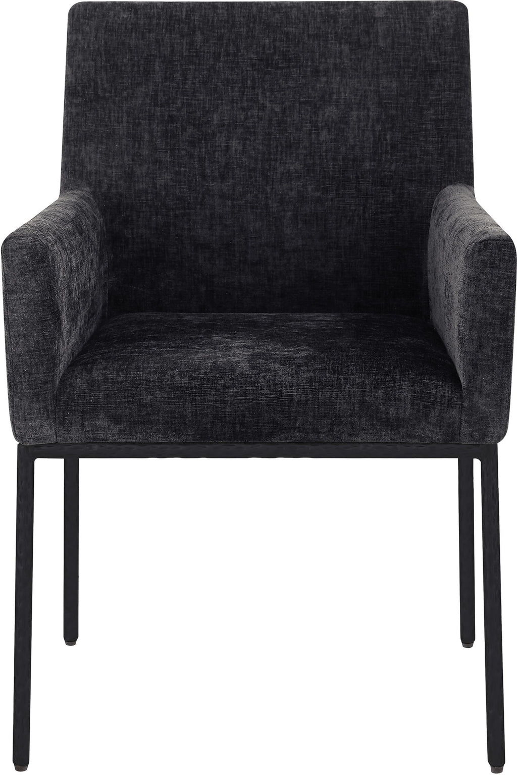 Casual comfort is the order of the day when dinner guests relax from the cozy confines of this Reeves soft chenille fabric dining chair. Sumptuously padded arms, back, and seat ensure total comfort from appetizers through dessert, and the neutral, solid-colored upholstered makes it easy to pair this dining chair with the table of your choice. An all-metal matte black frame and legs lend a contemporary finish and impeccable sturdiness and strength for long-term enjoyment.