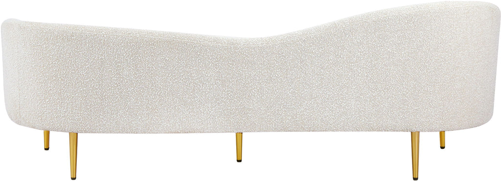 Impress family and guests alike with this Ritz Boucle Fabric Sofa. Wrapped in a cozy boucle fabric, this sofa exudes elegance and comfort. The gold metal legs add a touch of glamour to the overall design, making it a perfect addition to any modern living space. Sit back, unwind, and sink into the plush cushions of this chic and stylish sofa.