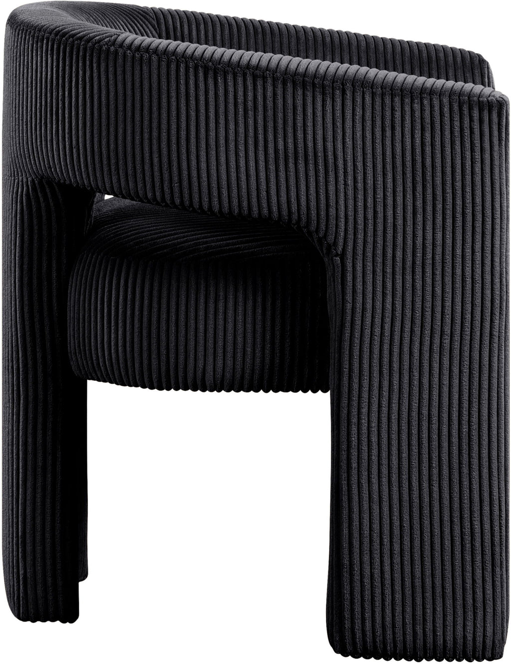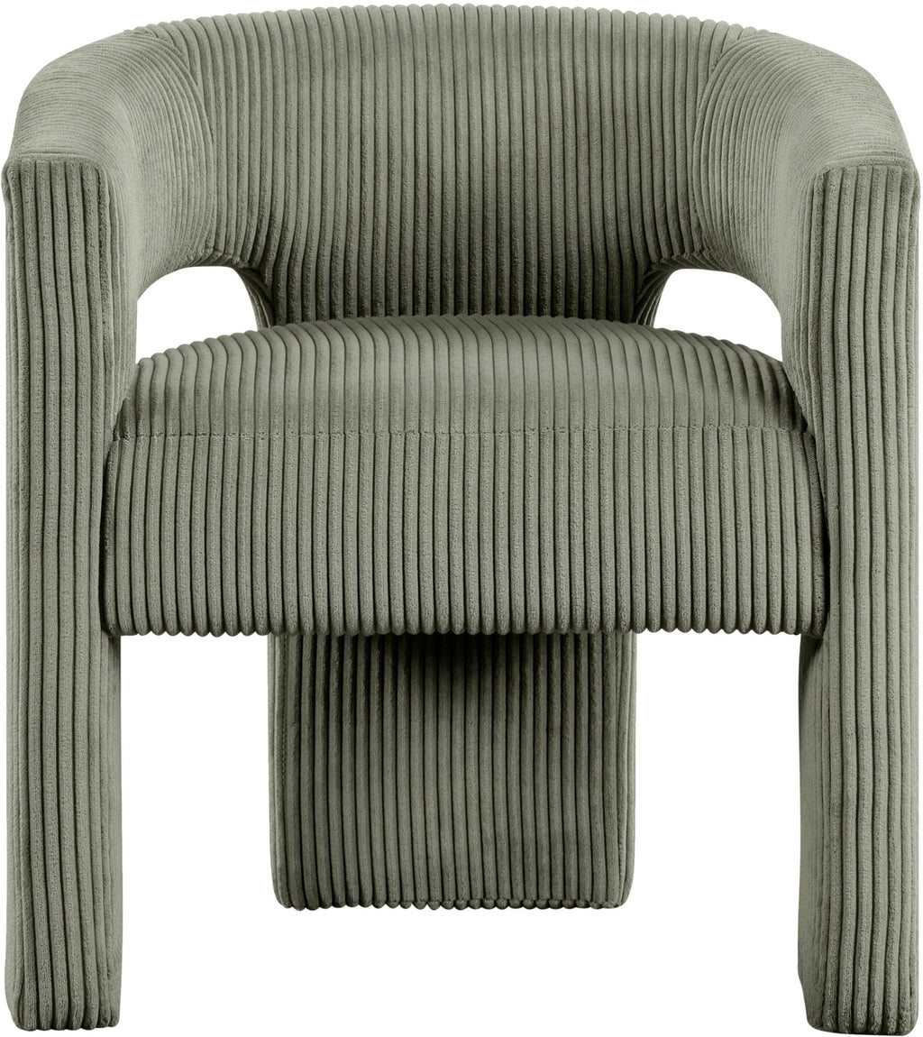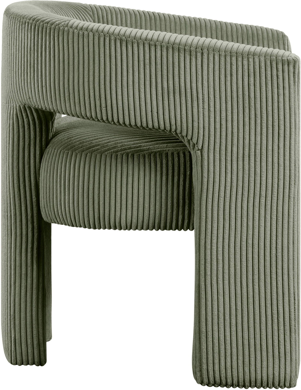 The Riz corduroy upholstered accent chair offers a modern twist on classic comfort. Crafted from soft, textured corduroy, this chair invites you to relax in style while its curved barrel design brings a touch of elegance to any room. The wide ribbed fabric enhances both the aesthetic and tactile appeal, making it the perfect blend of sophistication and cozy charm.
