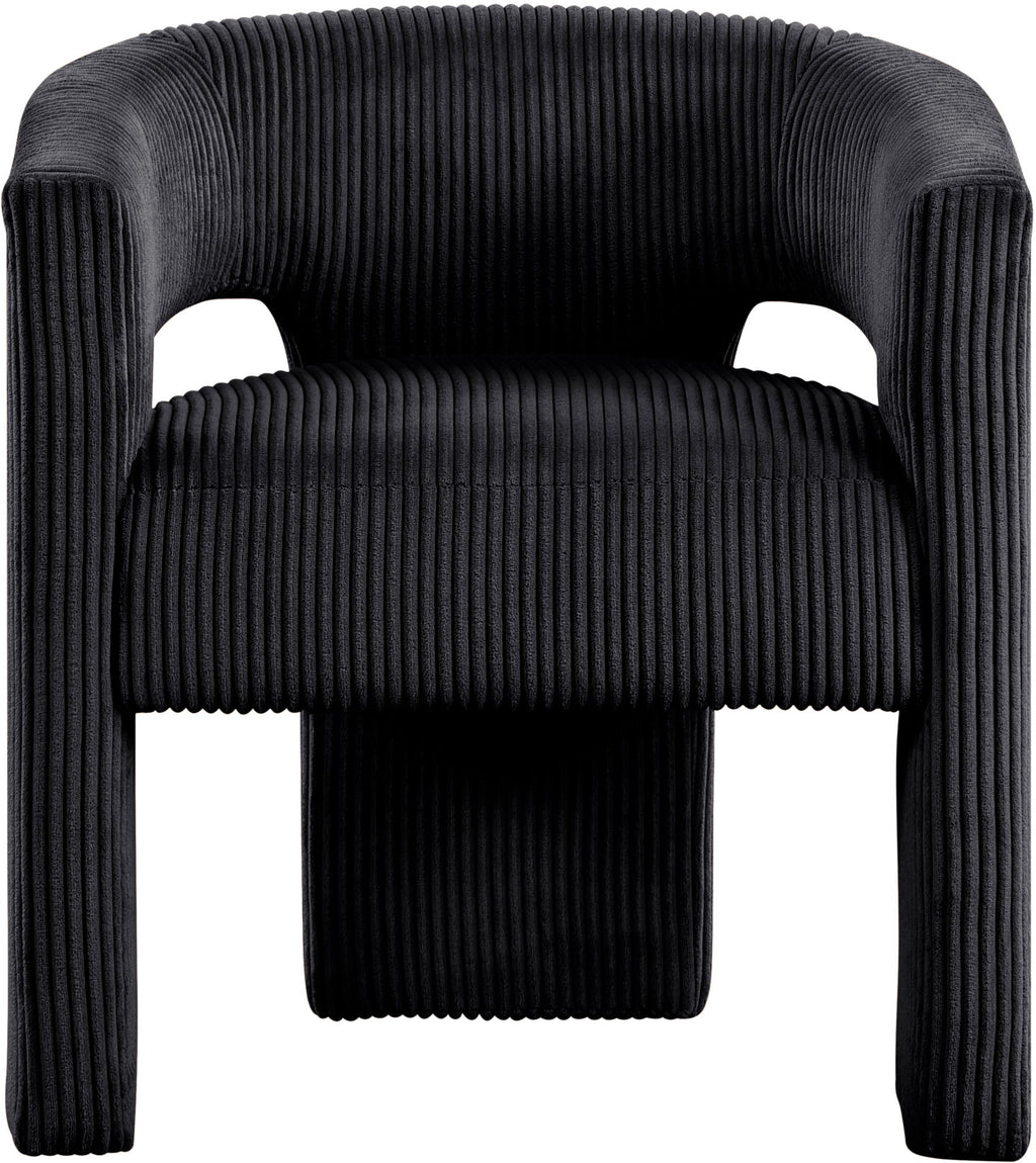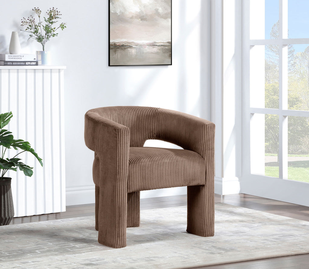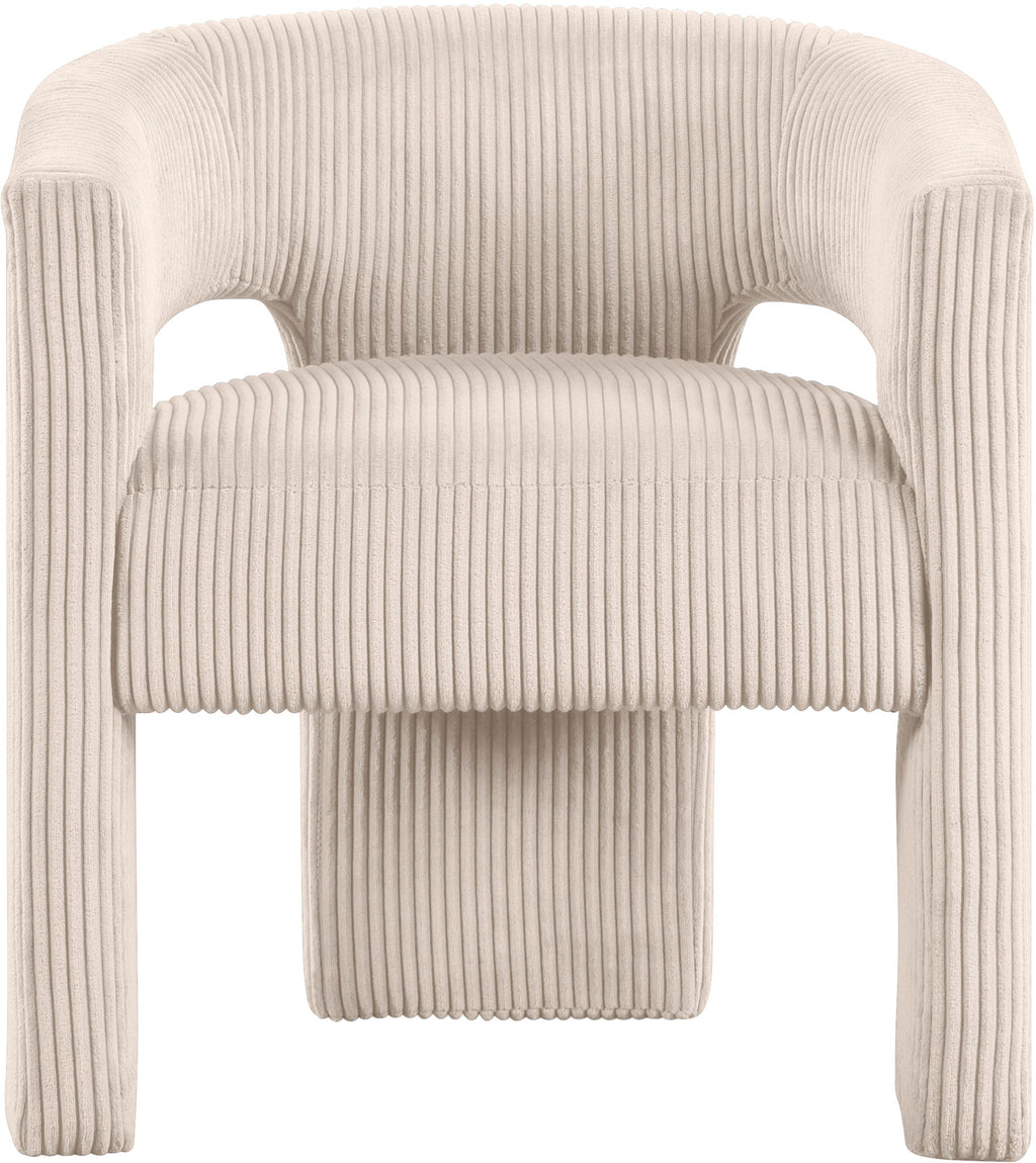 The Riz corduroy upholstered accent chair offers a modern twist on classic comfort. Crafted from soft, textured corduroy, this chair invites you to relax in style while its curved barrel design brings a touch of elegance to any room. The wide ribbed fabric enhances both the aesthetic and tactile appeal, making it the perfect blend of sophistication and cozy charm.
