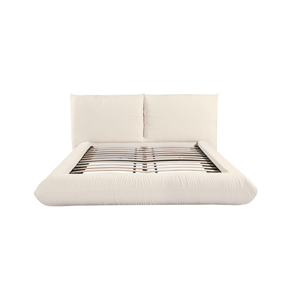 Meet the Romp Cream 100% Recycled Linen Bed, our most ingenious creation to date, bringing overtly plush and ultra-luxurious style to the mass market like never before. Utilizing a unique assembly technique, the pillowed nature of the bed frame is now available at an unprecedented price point. With two matching accent pillows included, this platform bed is not just a place to sleep but also the perfect spot to 'romp around' or enjoy your Netflix and chill.