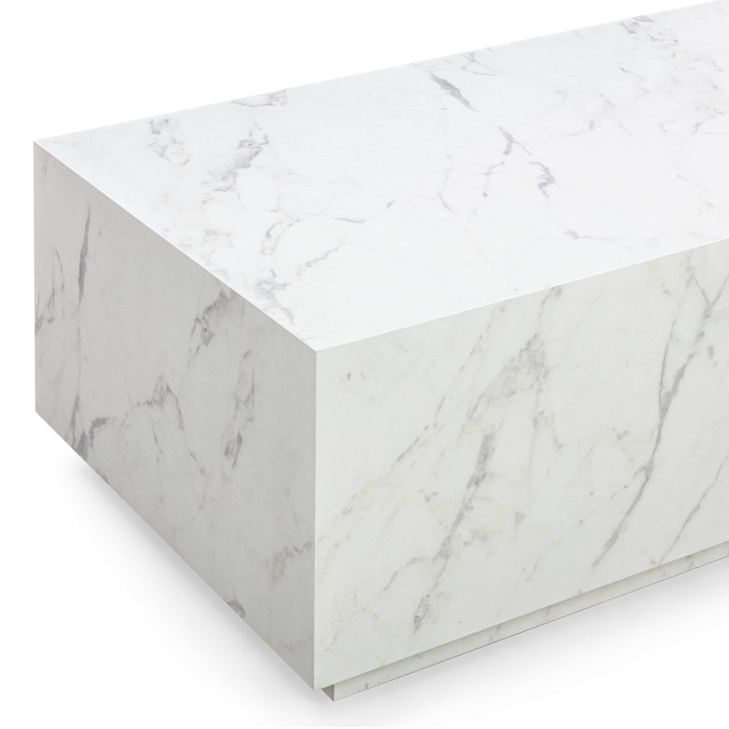 Streamlined and versatile, the Romy Table anchors your space with bold simplicity. Offered in faux wood, white marble, or cream travertine finishes, its wipe-clean surfaces balance high-style with low-maintenance practicality. Use one for a minimalist statement or pair two together to create a striking oversized square perfect for grounding a large sectional.