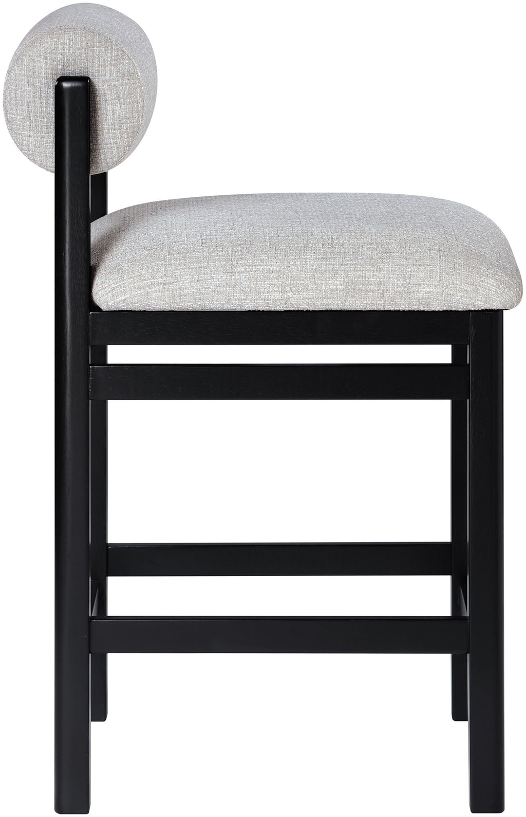 Soft textures and timeless design meet in the Roundhill counter stool, upholstered in a rich linen-textured fabric. A black wood frame enhances its art deco silhouette, bringing warmth and sophistication to your dining space. Whether styled solo or paired with a set, this chair elevates the ambiance with understated elegance.